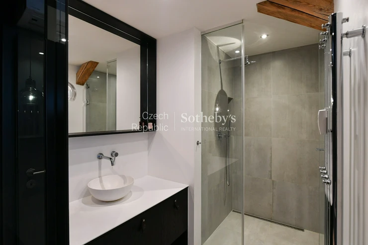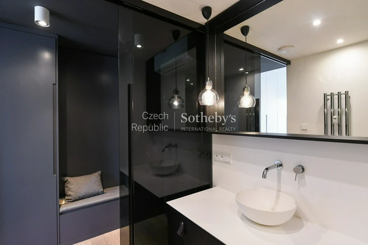 The rent is €3,665 (CZK 89,800) per month. The apartment includes a parking space in the garage of the house, the rental of which is mandatory in addition to the rent. The tenant is obliged to rent a parking space for a price of CZK 6,500 + VAT 21% (approx. €267 + VAT) per month.