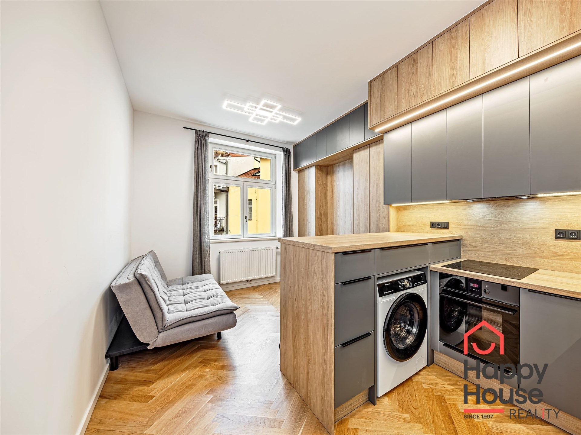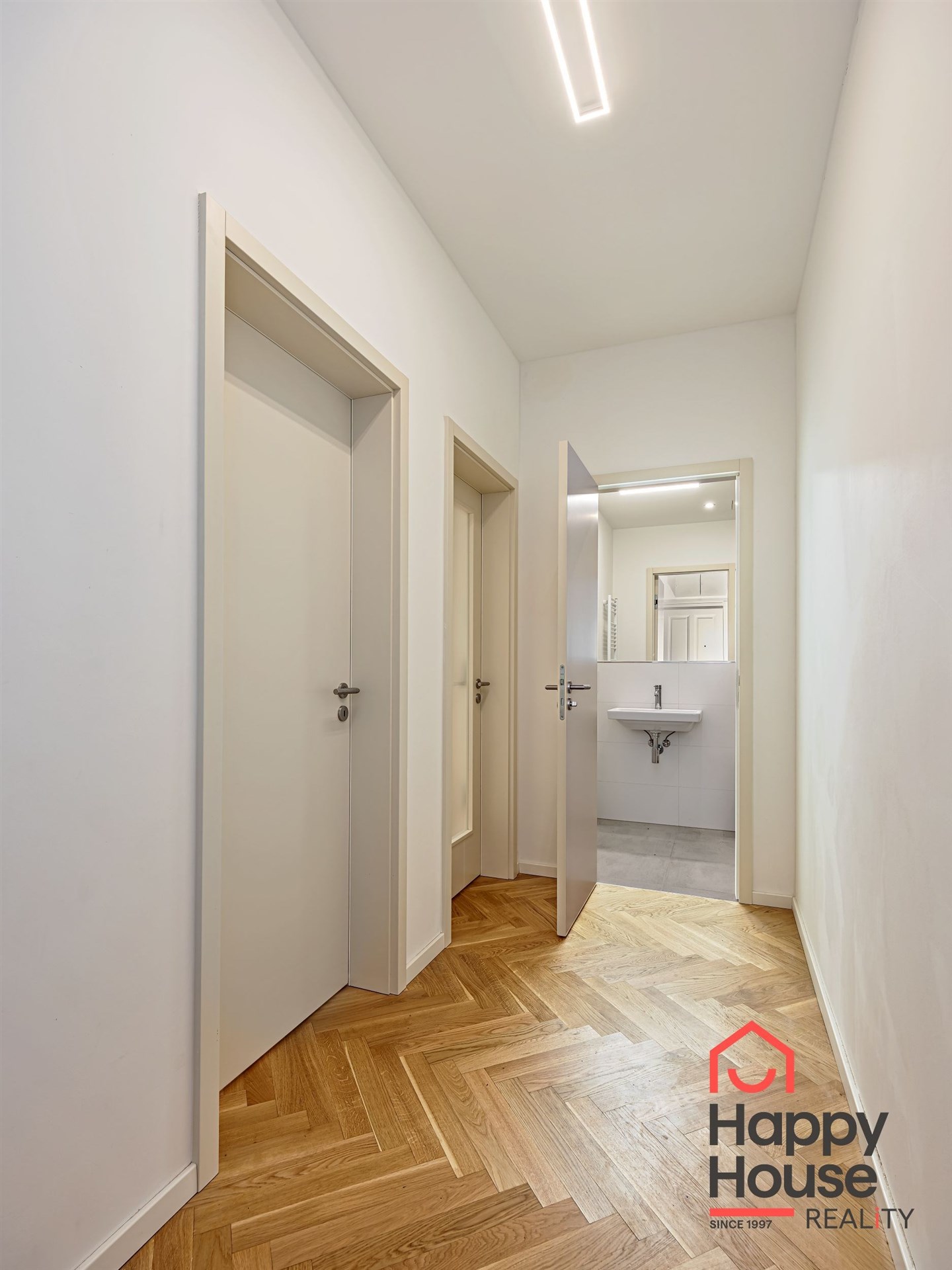 We offer for long-term rental a beautiful, completely renovated, and fully equipped 2+kk apartment of 44 sqm, located on the fifth floor of a brick building with an elevator. The apartment includes a balcony facing a quiet courtyard and also a cellar. The building underwent reconstruction in 2023, and the apartment itself was completely refurbished in 2025.