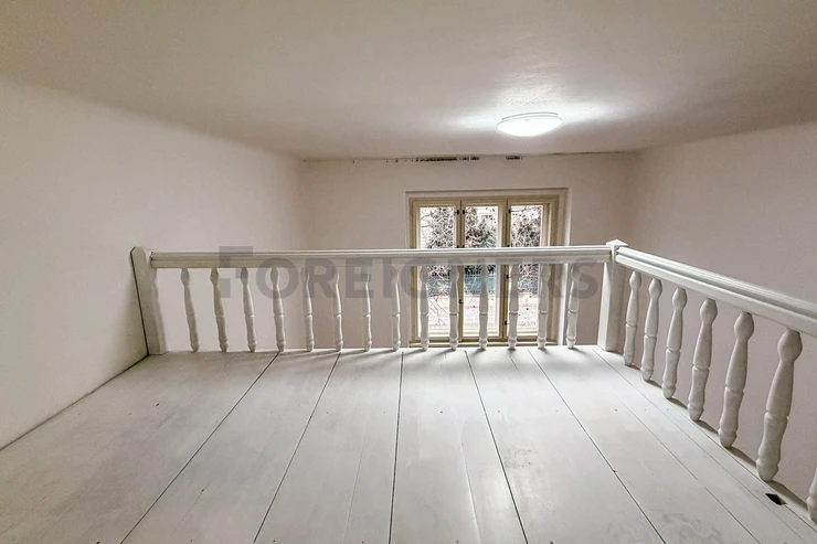 Three large, bright rooms facing the street, one of which includes a wooden mezzanine