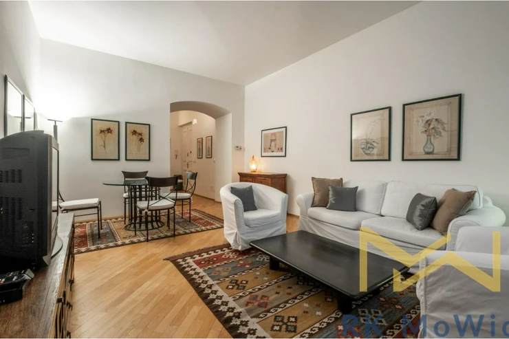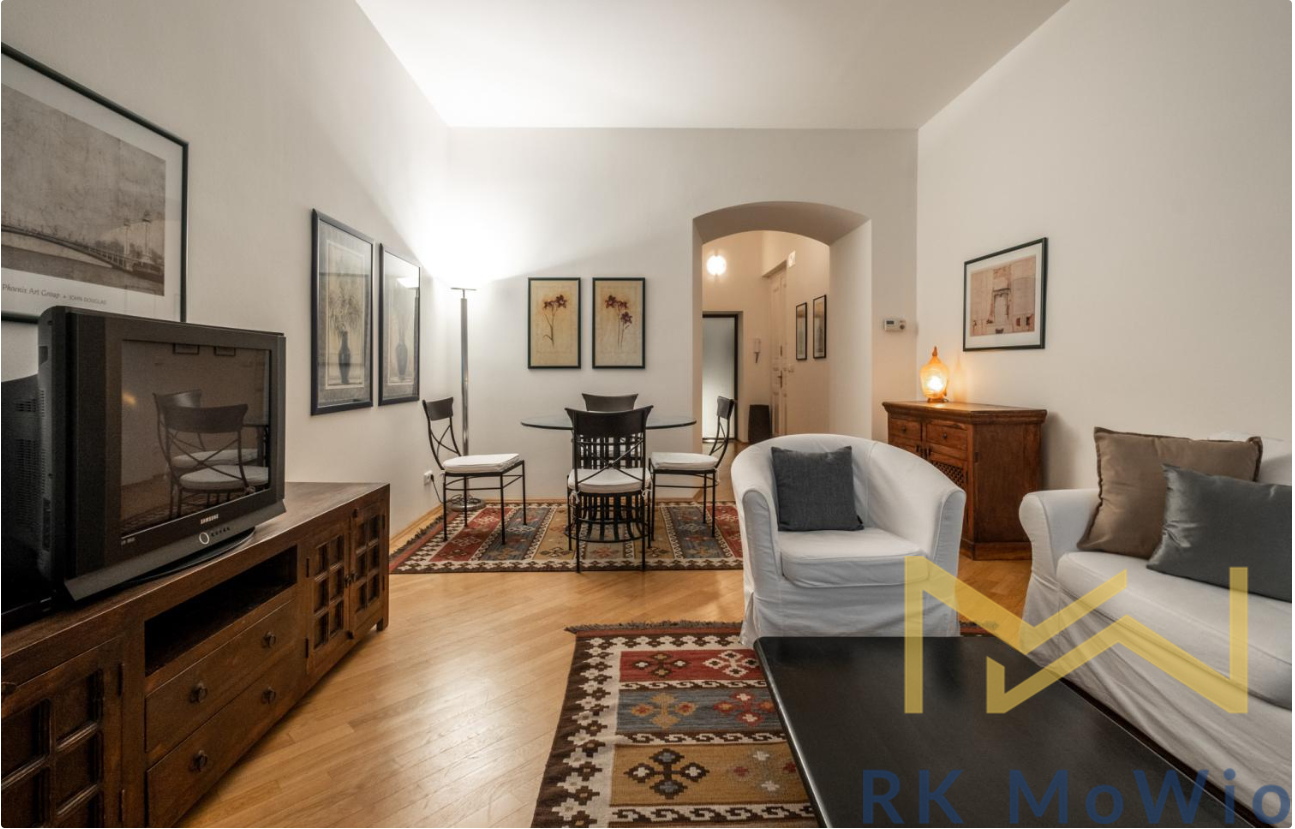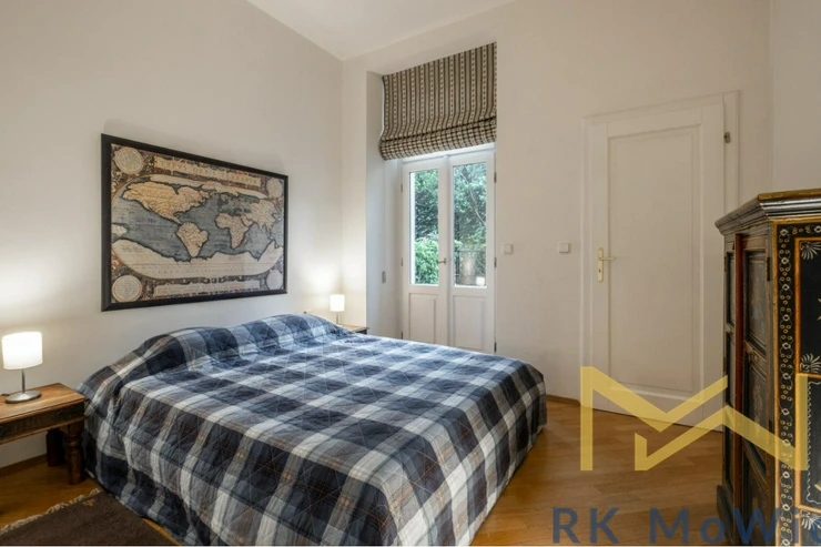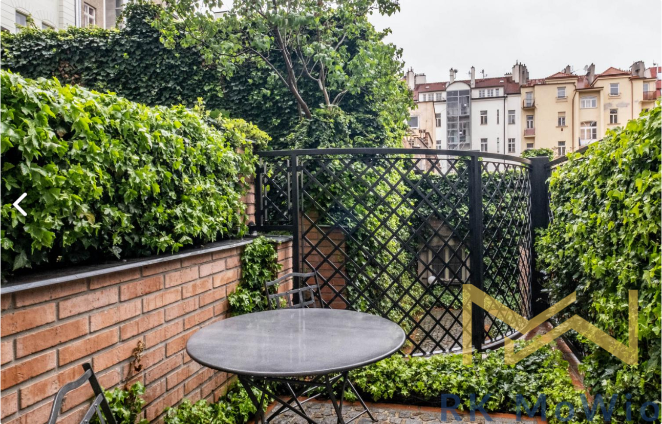 We offer for rent a fully furnished one-bedroom apartment with a total floor area of 54 sqm and a terrace/garden of 6 sqm, located on the ground floor (1st above-ground level) of an Art Nouveau building with an elevator, in Anny Letenské Street, Prague 2 – Vinohrady.