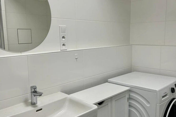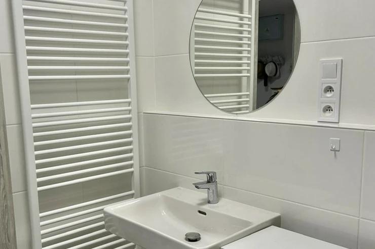 We offer for long-term rentfully furnished studio apartment (1+kk) with a living area of 42 m² plus 11 m² balcony. The apartment is located on the 1st floor of a new residential development — Kolčavka (KOLČAVKA) — situated on the border of Libeň and Vysočany. The apartment is an ideal choice for an individual or a couple looking for peaceful and comfortable living close to the city center. Be the first tenant to move in.