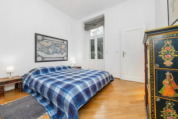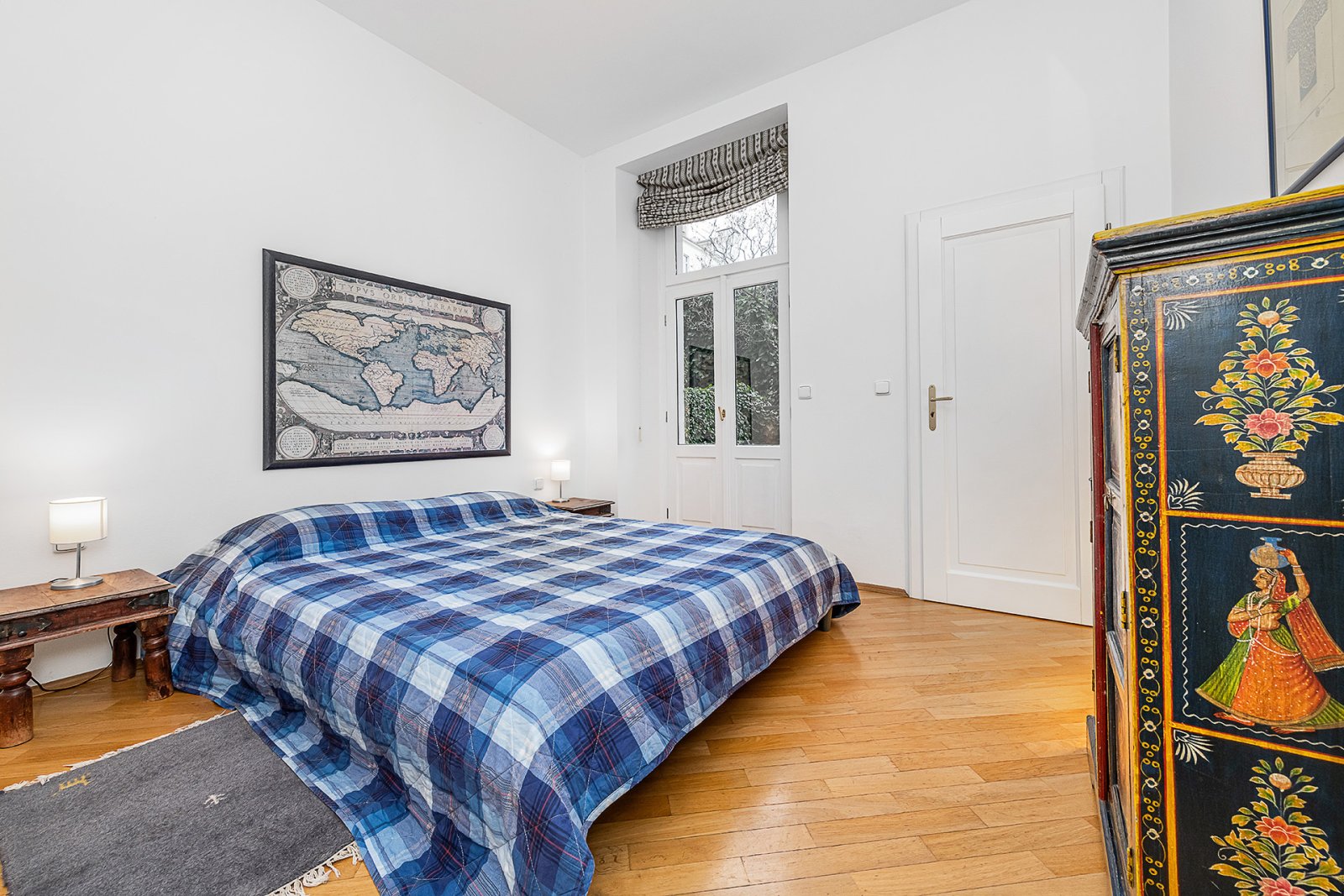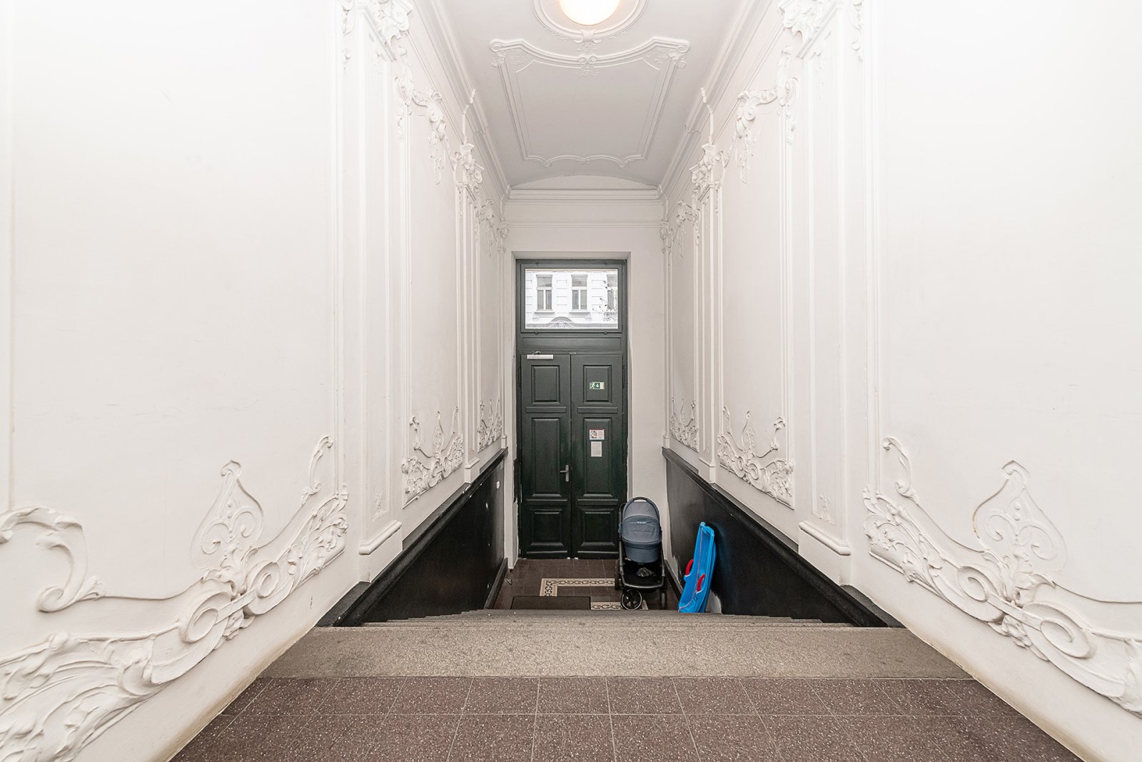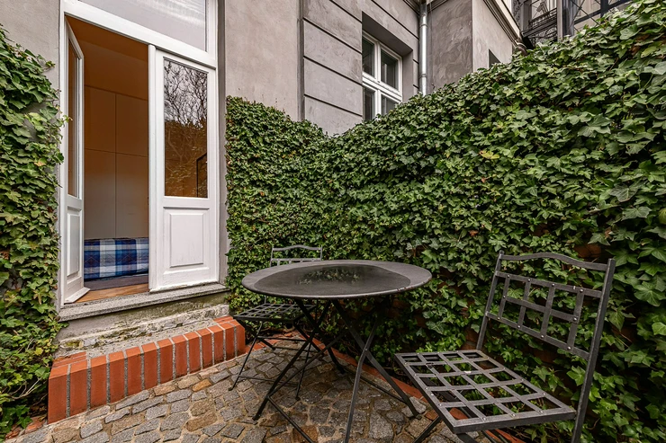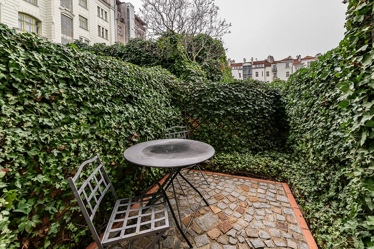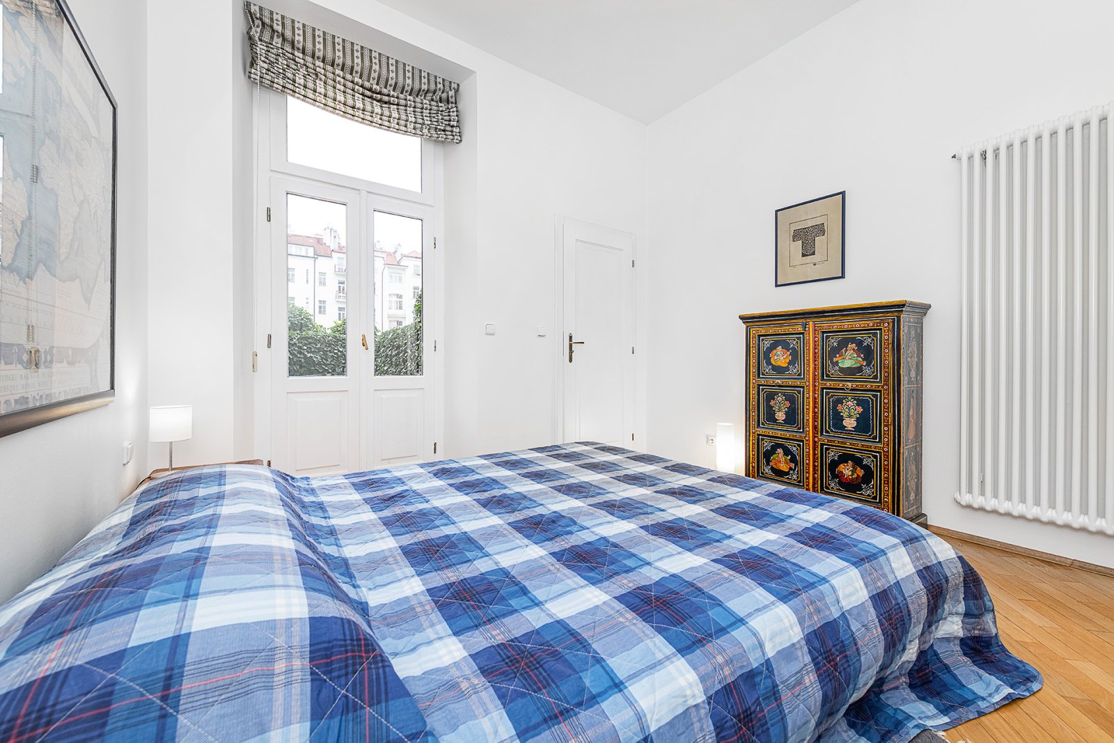 We offer for rent a fully furnished one bedroom apartment (54 sqm) with a small private garden (6 sqm) on the ground floor of a house in the neo-baroque style, which was sensitively renovated while preserving the original building elements. The house is located in a popular residential quarter of Prague 2 - Vinohrady, near the Riegrovy sady park, opposite the Vinohrady Theater, a 5-minute walk from Wenceslas Square and the National Museum. The apartment offers an entrance hall, a living room connected to the dining room, a fully equipped kitchen, a bedroom, a dressing room, a bathroom with a bathtub, toilet and bidet, a pantry. The apartment is equipped with wooden parquet and tile floors, satellite, internet connection. Tenants can use the shared garden in the courtyard of the house spread over two levels with carefully maintained greenery and a fountain. The greenery together with the illuminated fountain create an impressive atmosphere, especially at night. Sought-after location of Vinohrady, all civic amenities in the area. Excellent transport connections by public transport and car, metro and tram station on Náměstí Míru a few steps from the house. In the immediate vicinity there are many restaurants, cafes, bistros, local shops.
