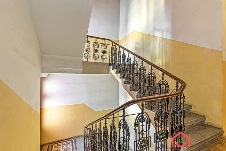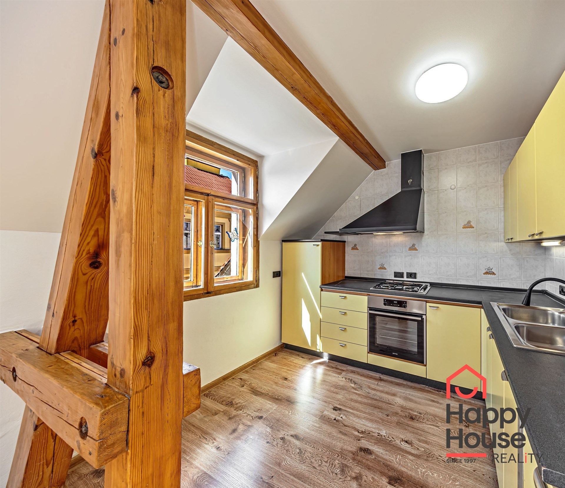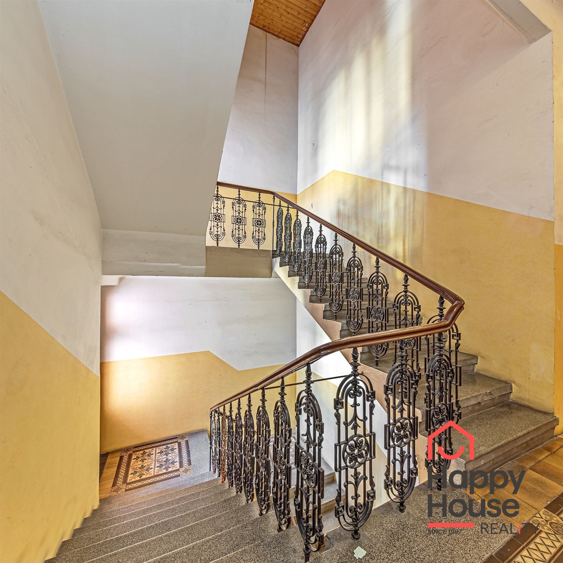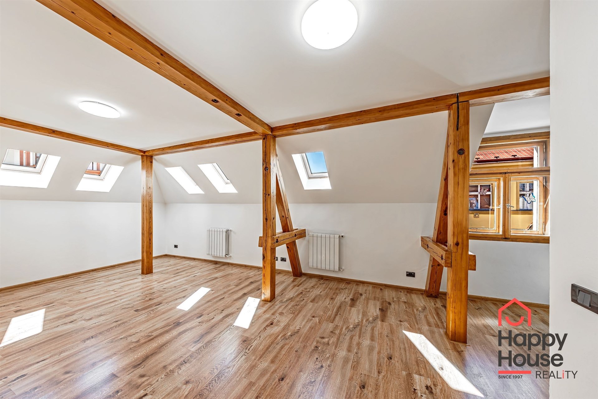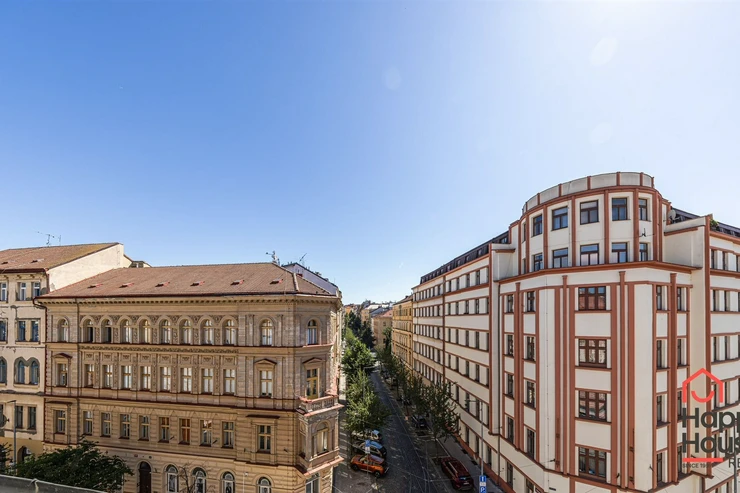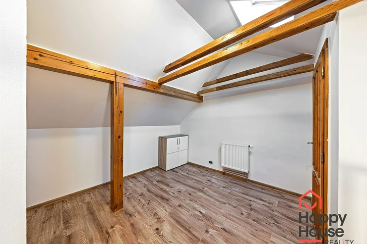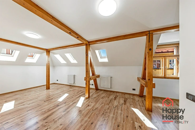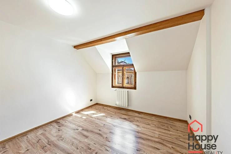 We offer for rent a beautiful, attic, maisonette two-bedroom apartment with an office located on the 5th floor of a brick building with an elevator in a very popular part of Prague 2, Vinohrady. The apartment is unfurnished and offers on the lower floor an entrance hall with staircase, spacious living room with kitchenette, separate bedroom, bathroom (bathtub, bidet, washing machine connection) and separate toilet. Wooden stairs lead to the upper floor, where there is another bedroom in "open space" and a second toilet. The kitchenette has a kitchen unit with built-in appliances - fridge with freezer, ceramic hob, electric oven, and extractor hood. The apartment has a unique atmosphere due to the exposed ceiling and supporting beams. It is also very bright due to the skylights. Telephone connection, internet, and cable TV are available. Laminate floating floors and tiling. Gas boiler in the apartment. Street parking - zones.