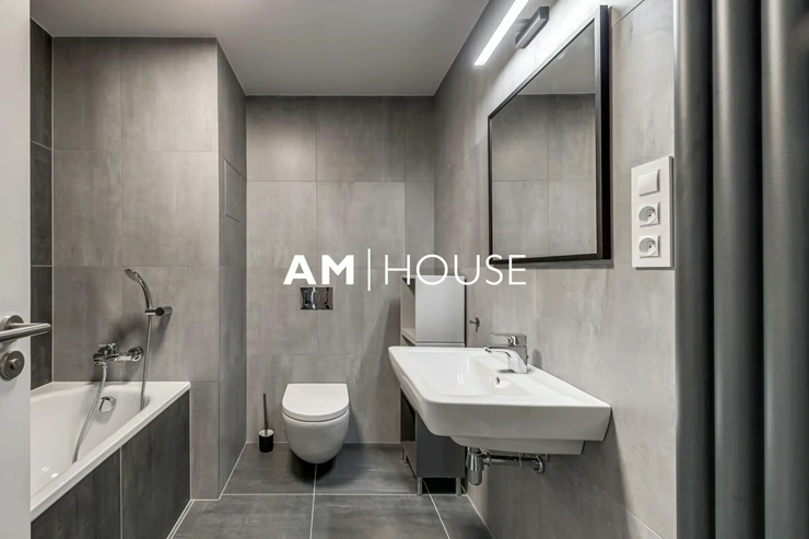 The layout of the unit consists of a living room with an equipped kitchen, dining area, sofa and Smart TV. The apartment has a bathroom with bathtub, washbasin, toilet, washing machine. The bedroom is equipped with a bed, exposed wardrobe.