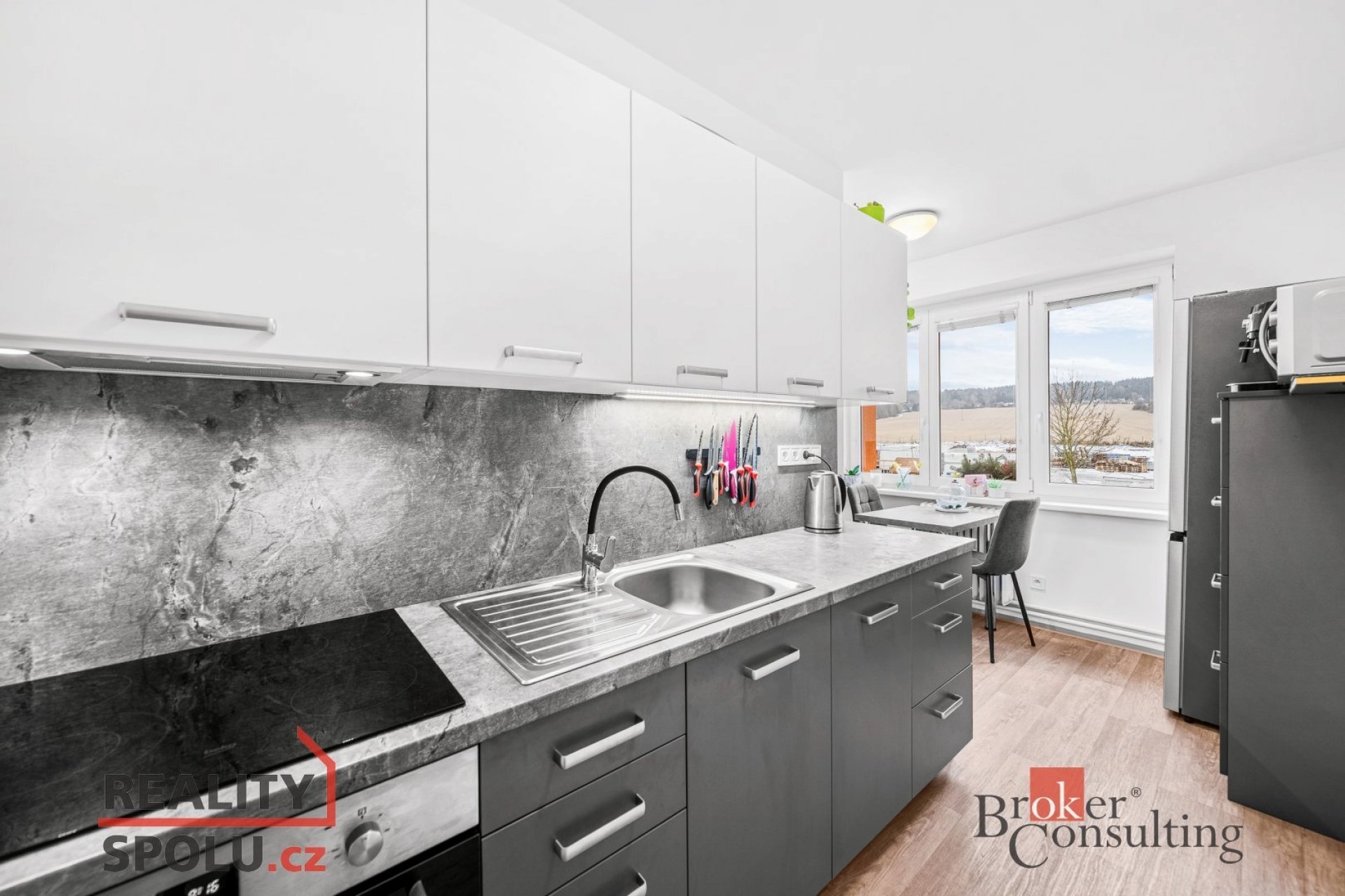 Byt se nachází v 1. patře zatepleného cihlového domu, je orientovaný na západ a má praktickou dispozici s neprůchozími místnostmi. Pronajímá se kompletně vybavený moderním nábytkem a spotřebiči (pračka, myčka, lednice s mrazákem, trouba, varná deska, mikrovlnná trouba, TV).