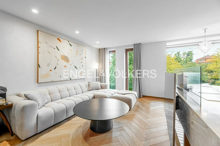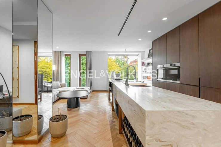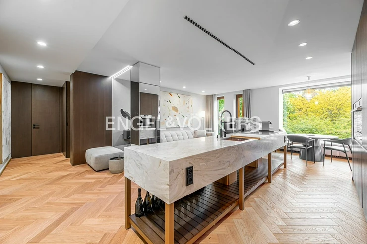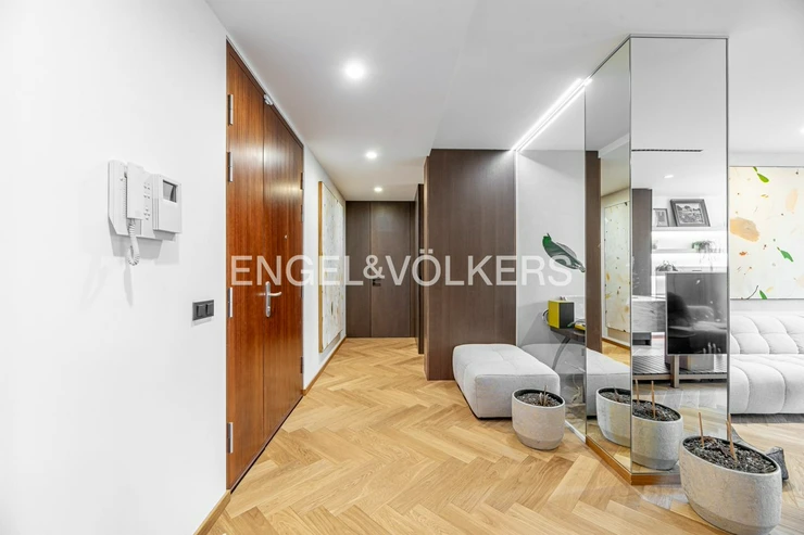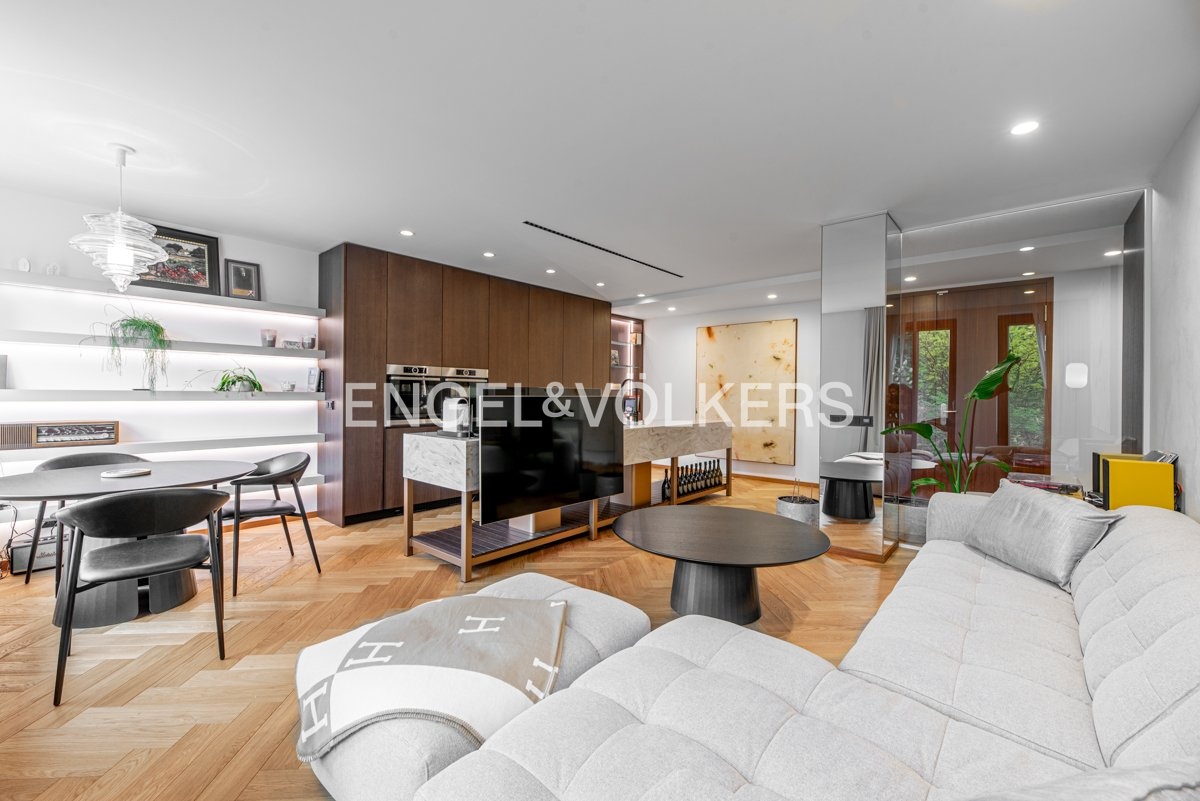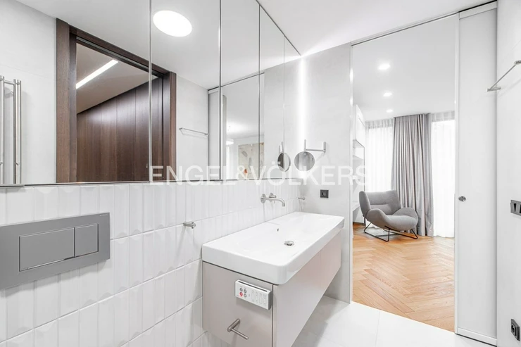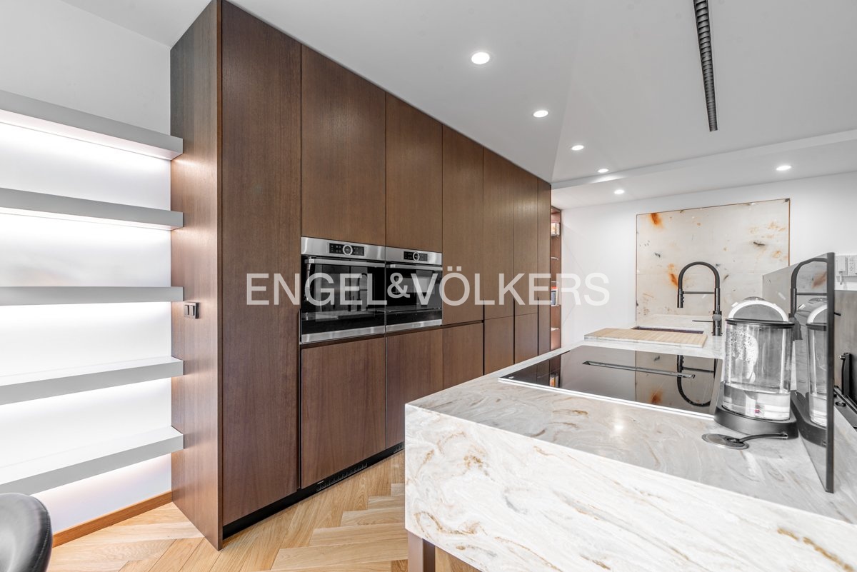 The apartment is equipped with custom-made furniture, premium solid wood flooring and air conditioning for maximum comfort. Thanks to the precise workmanship and the use of high-quality materials, this apartment offers a level of living that is quite exceptional.