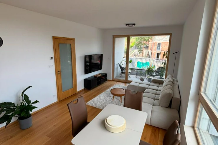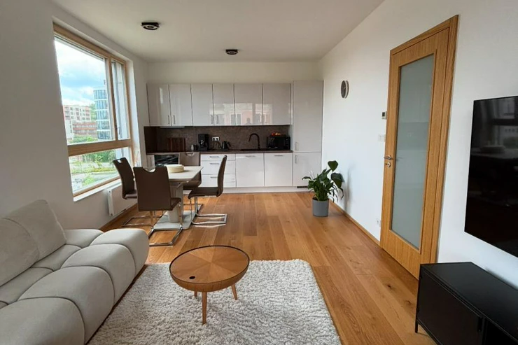 We offer for rent a modern, stylishly furnished 1-bedroom apartment (2+kk) with a floor area of 59 m and a cozy loggia (6.5 m), located on the 4th floor of the prestigious Nová Waltrovka residential project, on Vladimíra Kobranova Street, Prague 5 Jinonice.