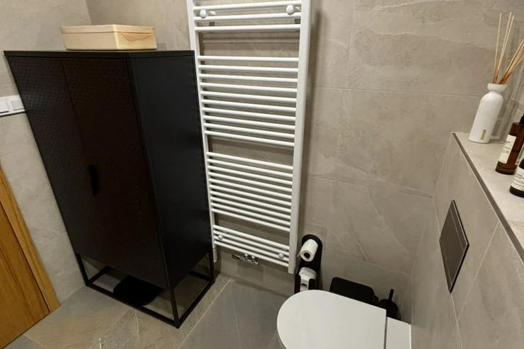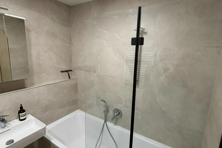 This bright and airy apartment impresses with its smart layout, high-quality furnishings, and a pleasant, welcoming atmosphere. The heart of the home is a spacious living room with a custom-made kitchen, fully equipped with modern appliances. From the living room, large French windows lead to a glazed loggia perfect for morning coffee, evening relaxation, or even a small urban garden.