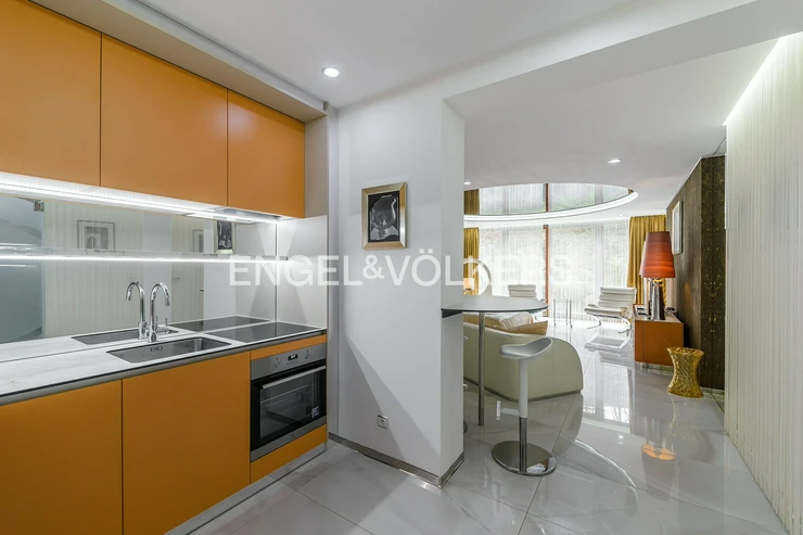 The apartment is located on the 2nd floor of the residence, which offers its tenants peace and complete privacy. Among other things, the tenants can use the parking spaces in the garage, and wellness or fitness facilities, which are located directly in the residence, for an additional fee.