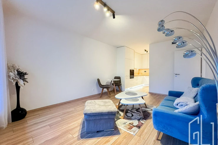 GLJ Partners exclusively offers for long-term rent a bright and modern 2+kk apartment with a total area of 75 sqm, located on the 2nd floor of a new residential complex Bohdalecké Kvarteto.