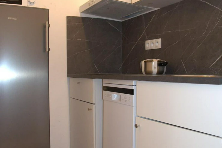 Shared kitchen with basic equipment: fridge, stovetop, extractor hood, dishwasher, microwave, electric kettle, basic dishes and utensils