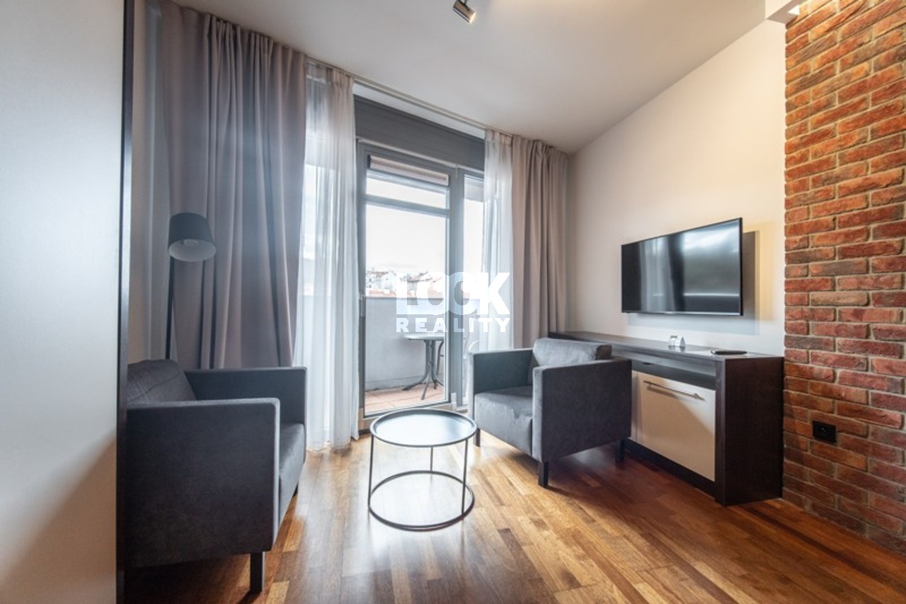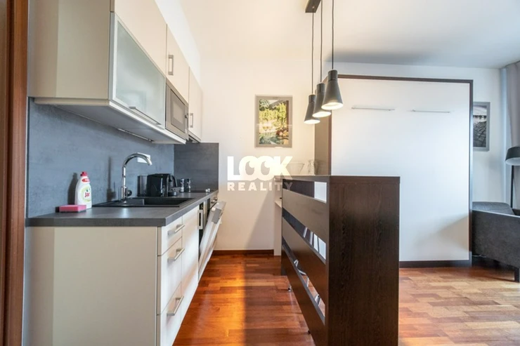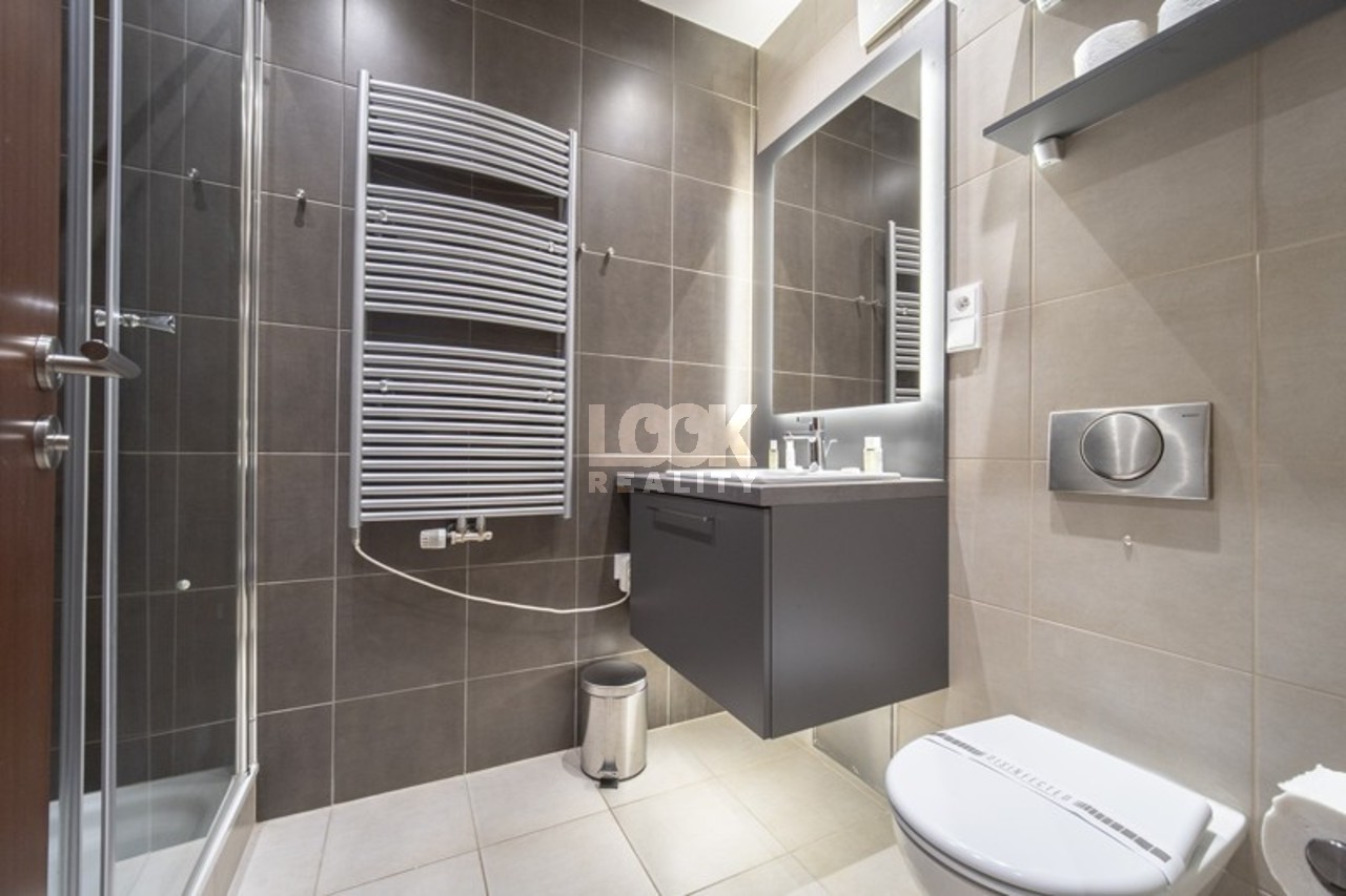 Luxury apartment in a quiet part of Prague, close to the city center. We offer for rent a beautiful apartment 1 + kk with a size of 30 m2, located in the new building with an elevator in the street Horska. The apartment is rented fully furnished with modern furniture and consists of a hall with built-in wardrobes, living room, bathroom and terrace with a beautiful view of Prague. In the living room there is a kitchen equipped with all appliances (hob, electric oven, dishwasher, microwave), there is also a bar, folding dining table with chairs, folding double bed and sofa. In the bathroom there is a shower, washing machine with dryer and toilet. There is a reception in the house. The apartment has the possibility of renting a garage. The apartment is located in a quiet part of Prague in Albertov, but close to the center. A few minutes from the house is a tram stop Albertov, near Karlovo namesti square. You can get to the center of Prague in 10 minutes. In the vicinity of all civic amenities. Within walking distance is the Botanical Garden and many historical monuments and places of interest. Possibility of short-term rental. Luxury living in an attractive location, we recommend. Illustrative photo. Available from 5.4.2023