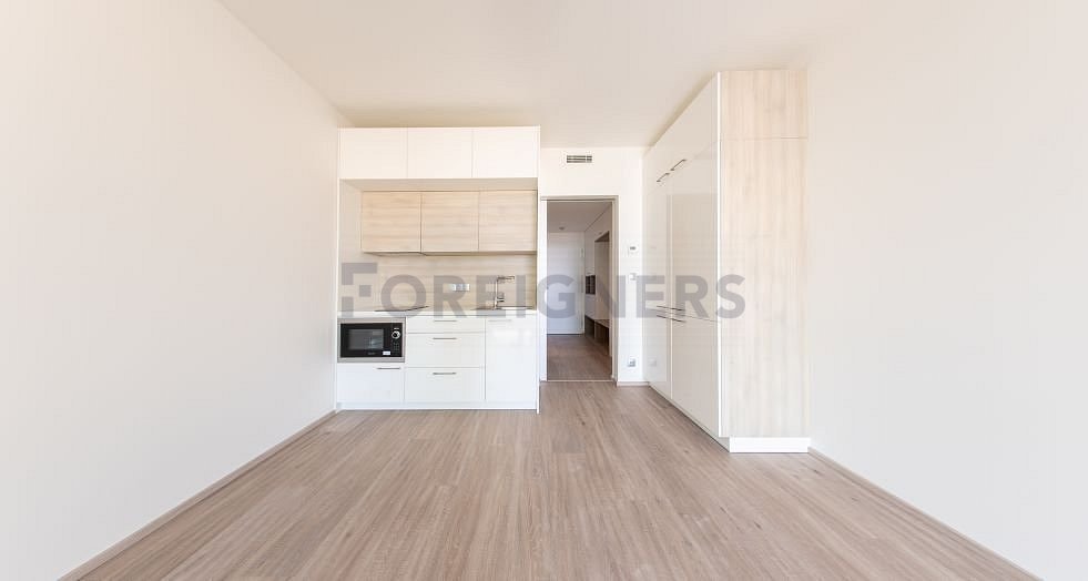 We offer for rent a partially furnished 1+kk studio apartment with a balcony in Harfa Design Residence.Harfa Design Residence welcomes you with open arms and offers luxury interiors with shiny chrome features and refreshing yellow accents on the fasade.