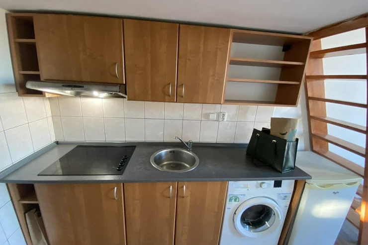 Sunny apartment after reconstruction is located on the 2nd floor of the house. Kitchen, stainless steel glass-ceramic hob, washing machine, refrigerator, stainless steel chimney hood, bathroom (bath, sink, toilet).