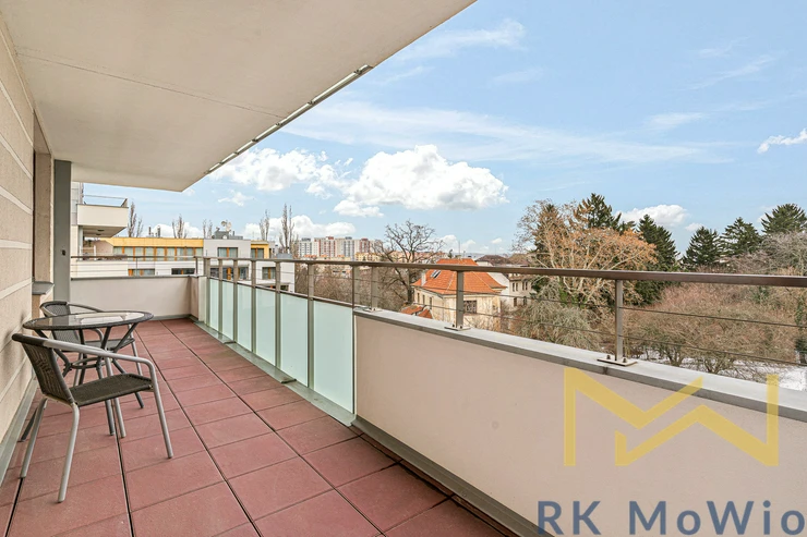 We offer for rent a furnished 2+kk apartment with a floor area of 59 sqm and a 16 sqm terrace, situated on the 3rd floor (4th above-ground floor) of a modern building with an elevator, in Pod Dvorem Street, Prague 6 – Veleslavín.