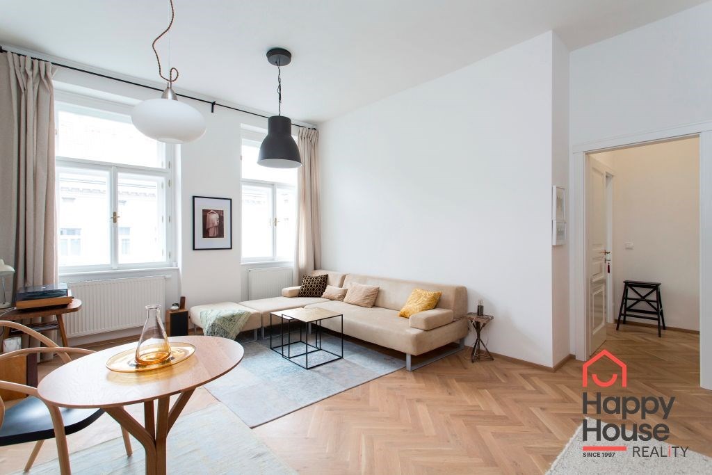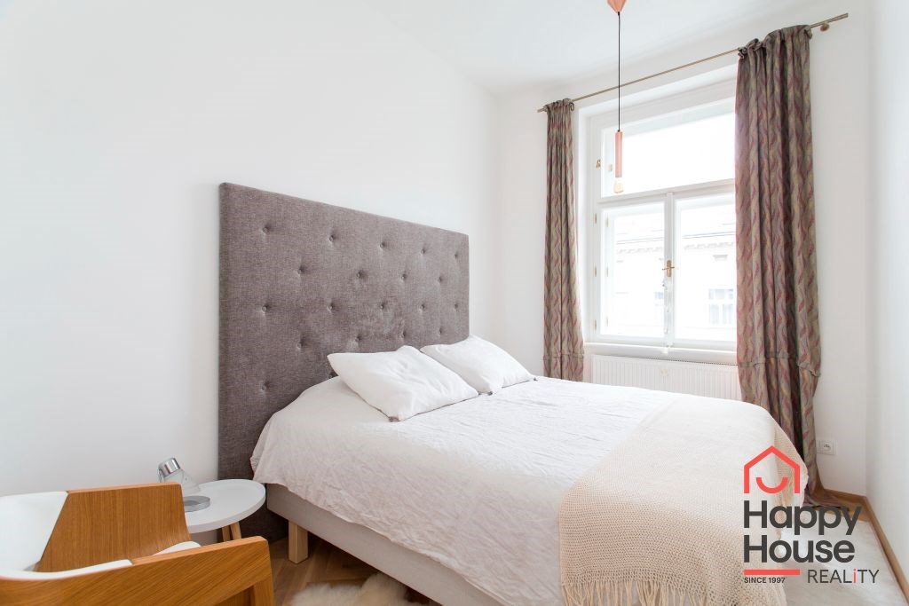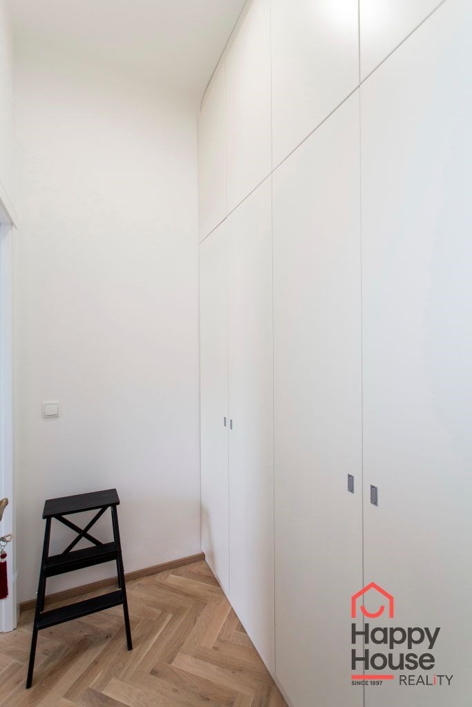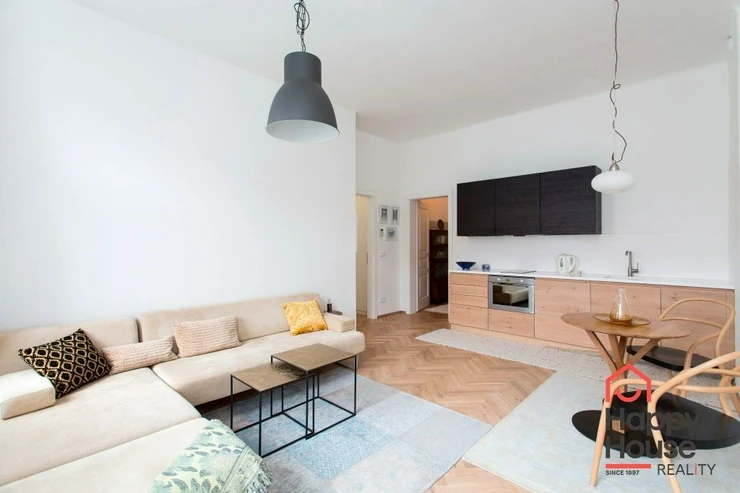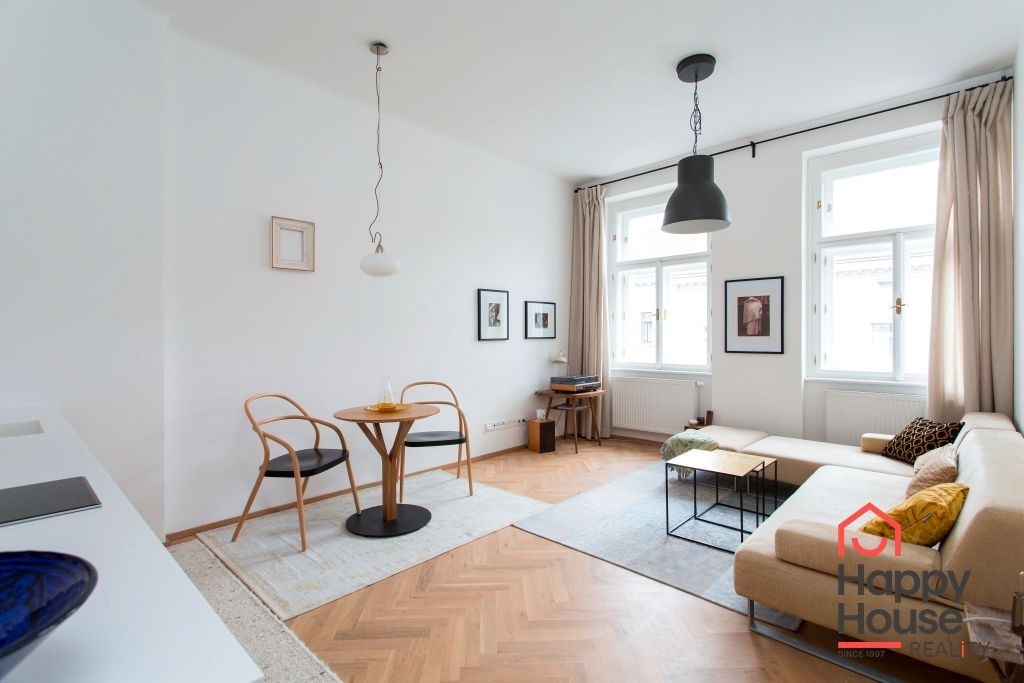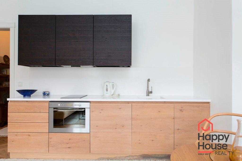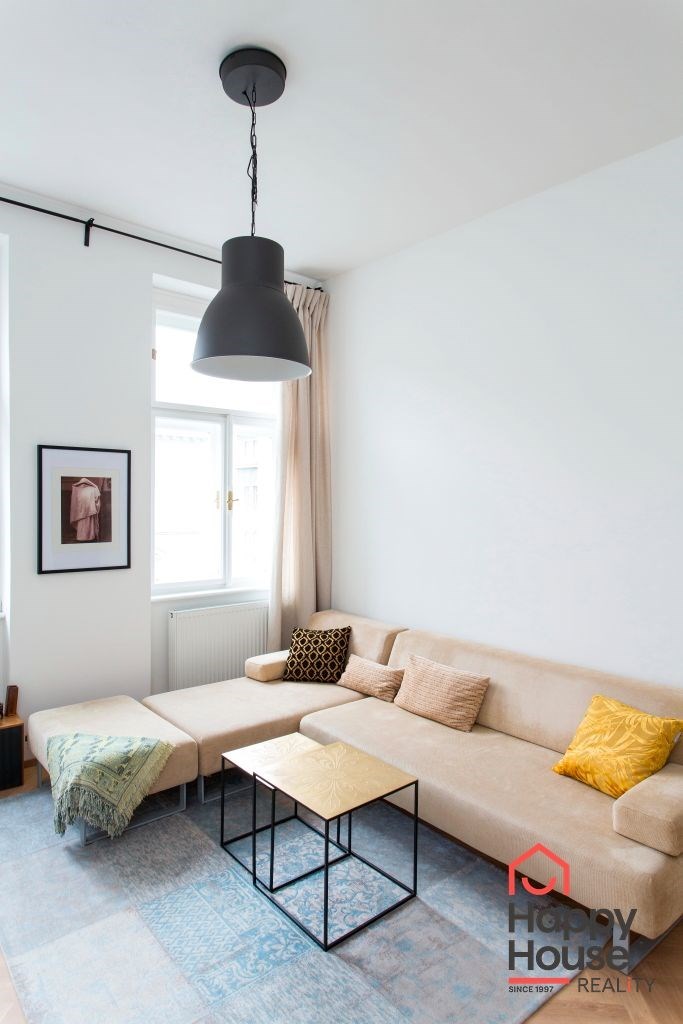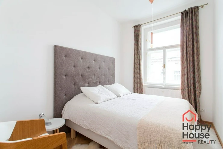 We offer a beautiful, bright, stylishly furnished one-bedroom apartment for medium-term rent, located on the 3rd floor of a brick building with an elevator in the sought-after area of Prague 7 in Bubeneč. The modern kitchenette includes a refrigerator, a glass-ceramic double stove, and a combination of electric and microwave ovens. The bathroom has a bathtub, with a separate toilet. The apartment also includes a washing machine. Internet from Vodafone and O2 is available in the building. The floors are oak parquet and tiles. There is a gas boiler in the apartment. Street parking - zones.