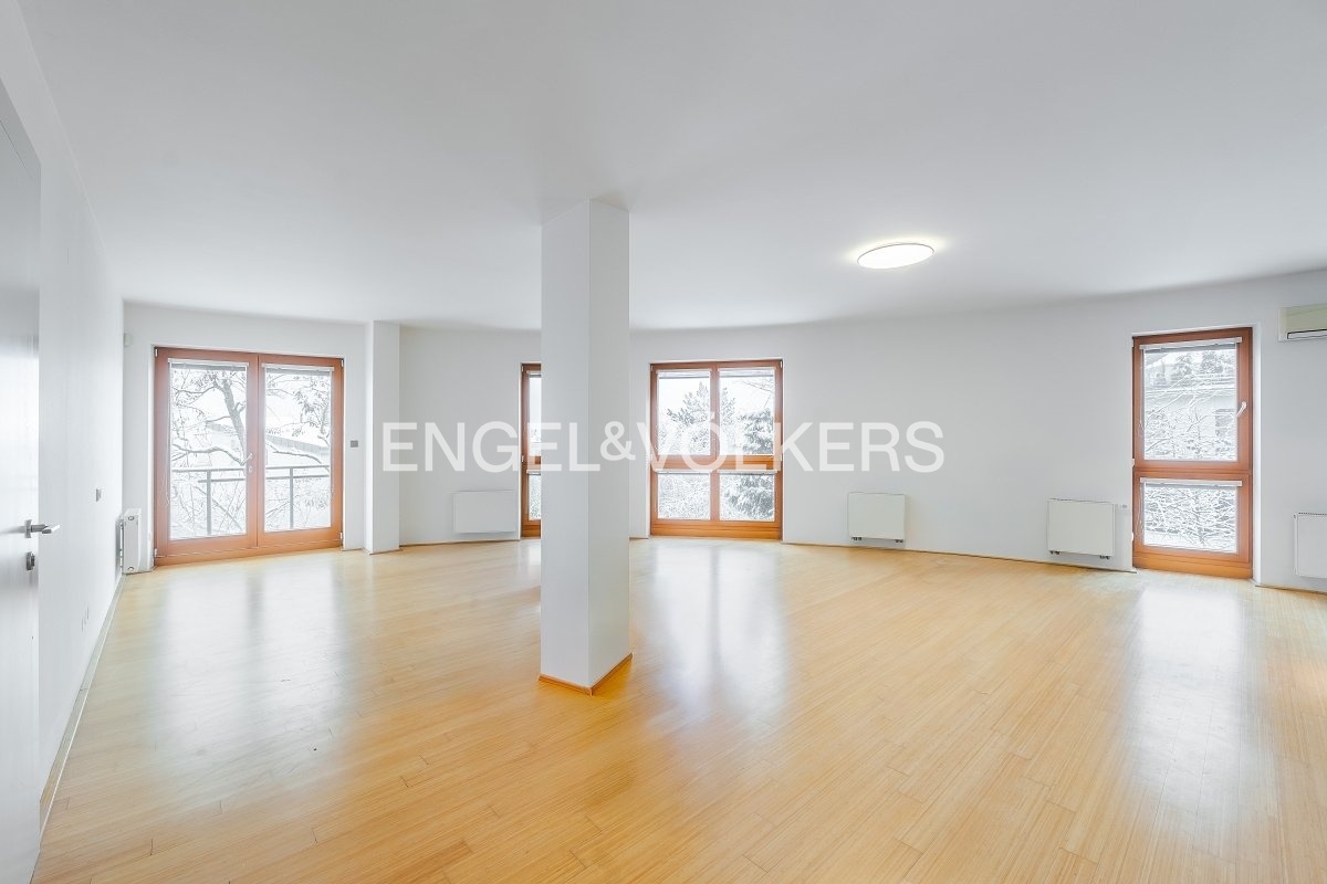 We offer for rent a bright and very spacious 5+kt apartment with an area of 170 m² on the 2nd floor of a modern residential complex with underground parking and 24-hour security. The apartment offers 4 bedrooms, 2 bathrooms, 2 balconies, a cellar, and two garage parking spaces included in the price.