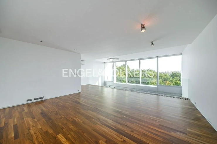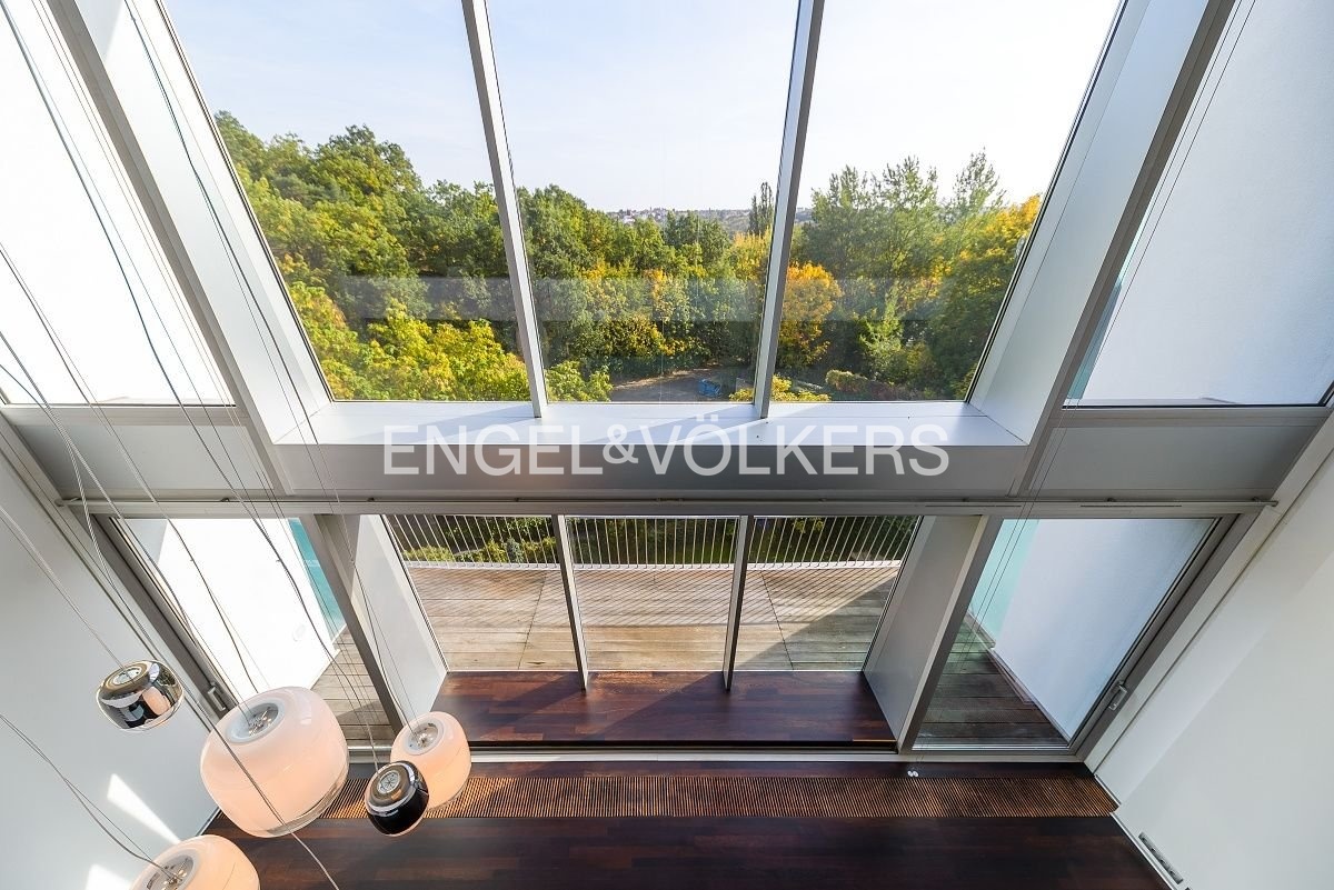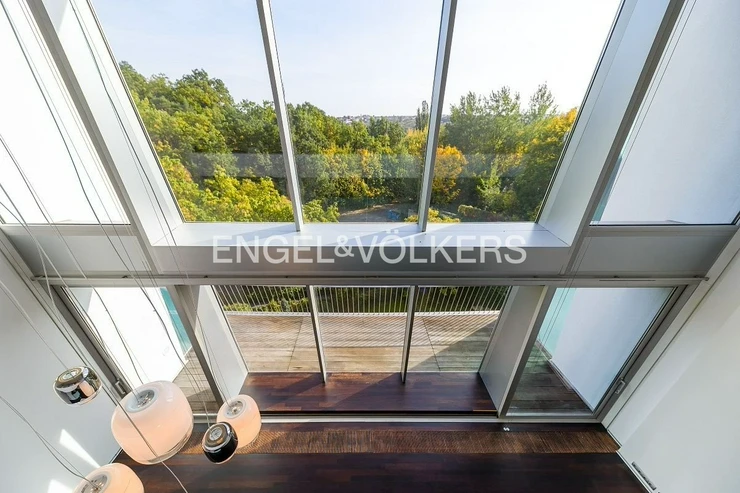The modern XY Hřebenky residence is nestled on the southern slope of Smíchovské Hřebenky. Thanks to the brilliant design by architect Radan Hubička and the meticulous execution by the developer FCC, this project masterfully combines timeless design with high standards, tranquillity, and safety. The layout of the apartment is pragmatically designed. Entering the apartment, you are greeted by a fully equipped kitchenette seamlessly connected to the living area, bordered by a spacious terrace. The lower floor houses two bedrooms with a shared bathroom and the master bedroom with its ensuite, all facing the calm and green northern side.