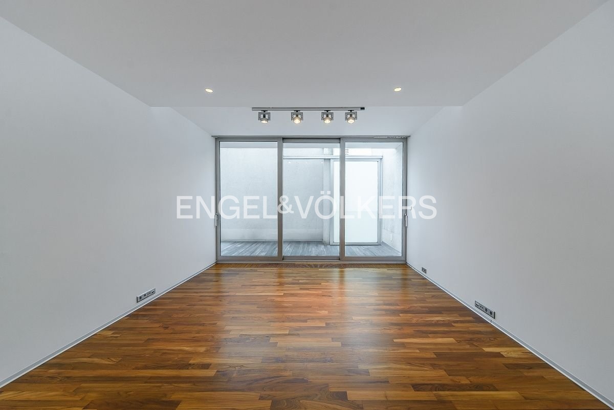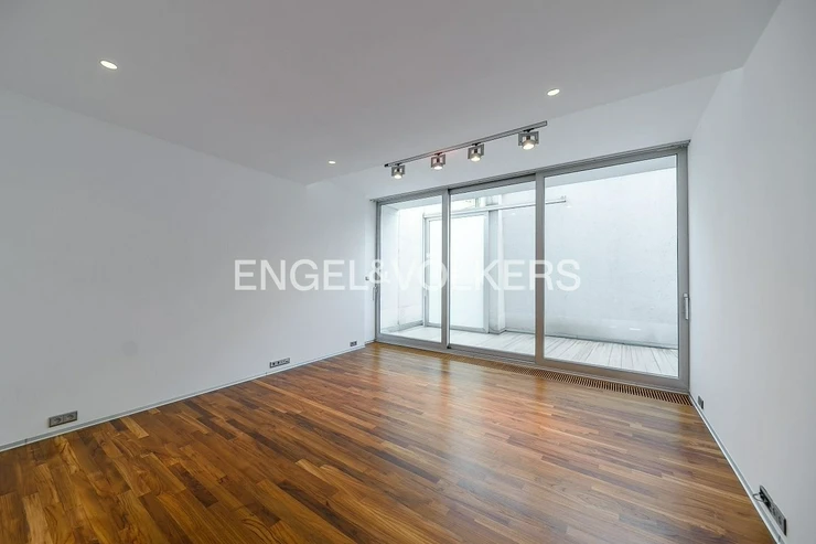 The apartment is fully air-conditioned, has underfloor heating, and boasts secure code-access doors. It's available for long-term rental and comes unfurnished.
