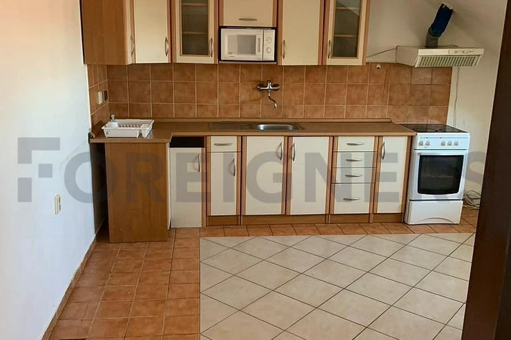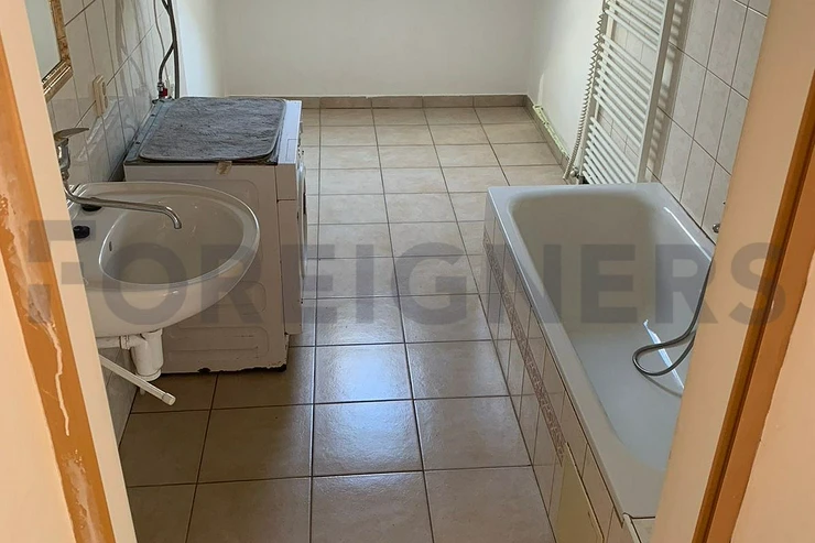 This apartment is offered as semi-furnished and tenants can furnish it according to their own taste and style ! There is large kitchen counter availabe with microwave oven and electric stove with oven as well. In the main hallway we can find an open wardrobe with coat hanger and racks. Toilet is separated and bathroom consists of a bath tub, sink with mirror, heating racks and washing machine. Water is warmed by a cylinder and heating is central.