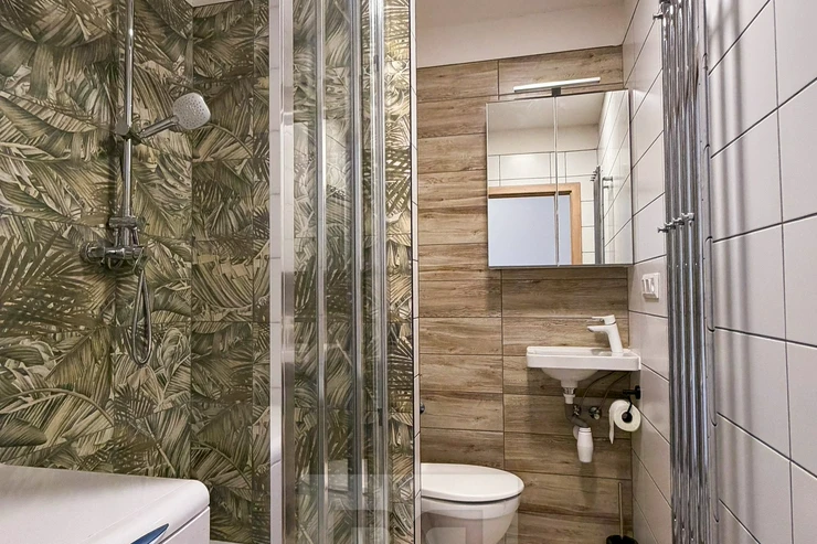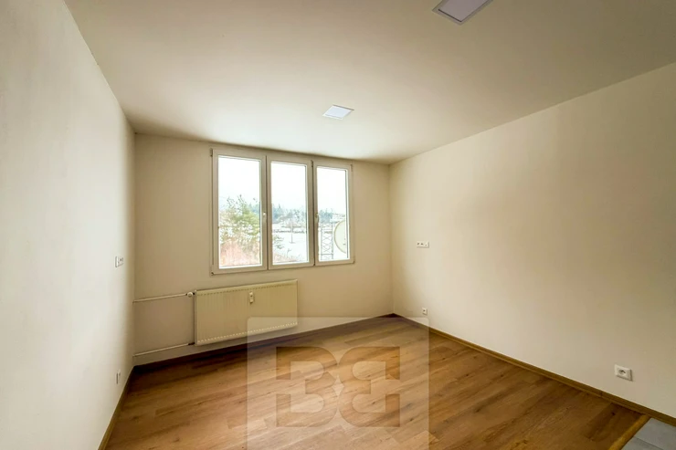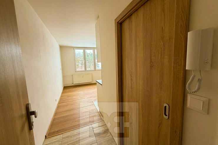 Z předsíně je vstup do koupelny a novým sprchovým koutem a pračkou. Srdcem bytu je slunná místnost s výhledem na les, spojená s kuchyńským koutem. V kuchyni najdete vybavení pro malé i větší vaření - sklokeramickou varnou desku, ledničku a dostatek úložného prostoru.