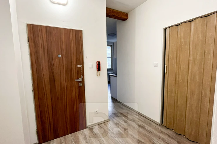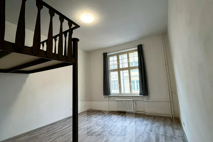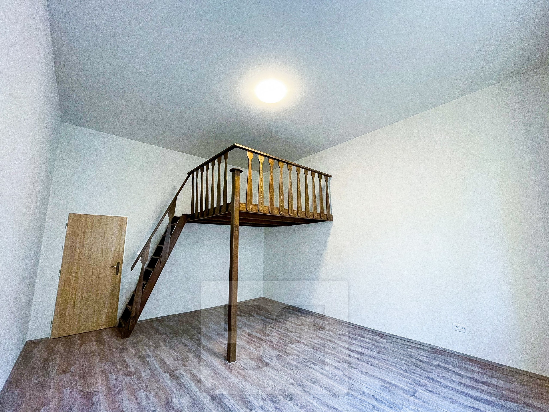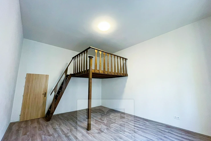 Byt se skládá z prostrorné předsíně, z níž vedou dveře do hlavní ložnice s vyvýšeným patrem na spaní nebo relaxaci. Zaujmou Vás vysoké stropy a velká, špaletová okna díky kterým prostor krásně světlý.