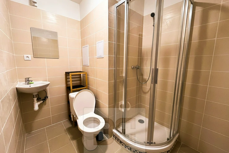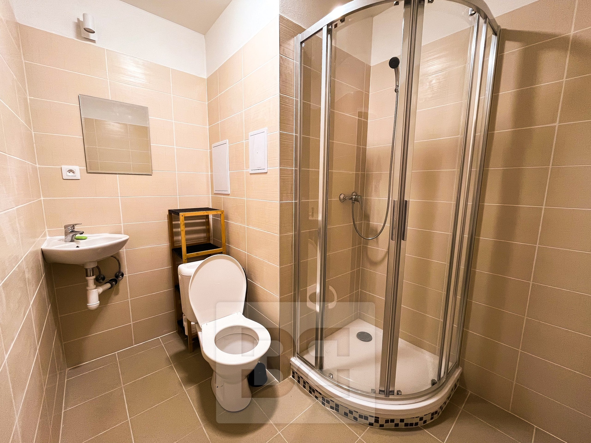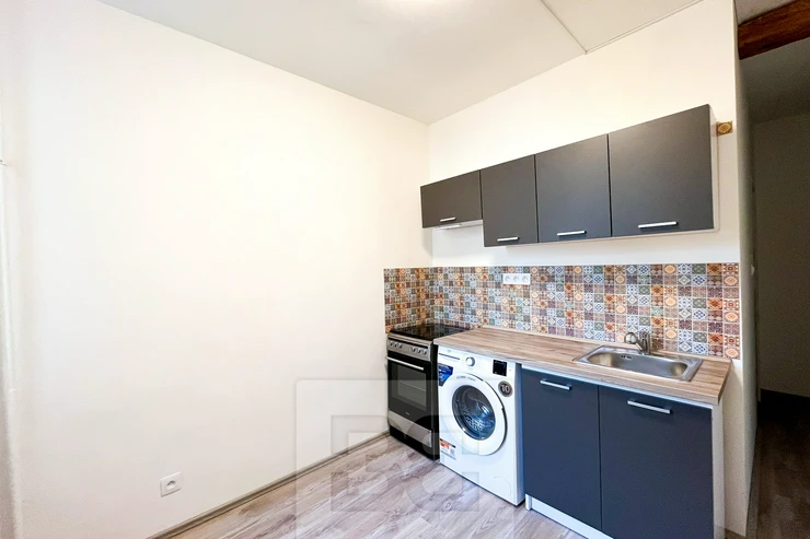 Z předsíně vedou dveře do koupelny se prchovým koutem a toaletou a také do kompletně zařízené kuchyně s pračkou, sporákem s troubou. Vše je nové, nepoužité.