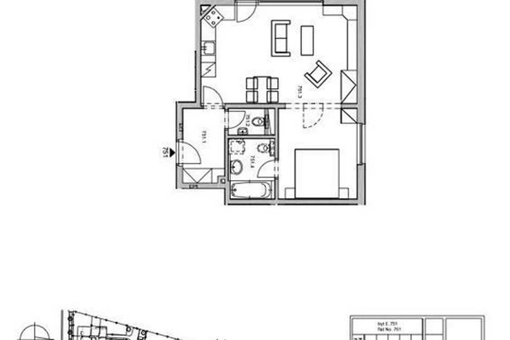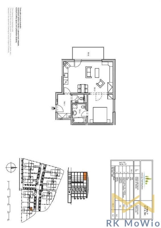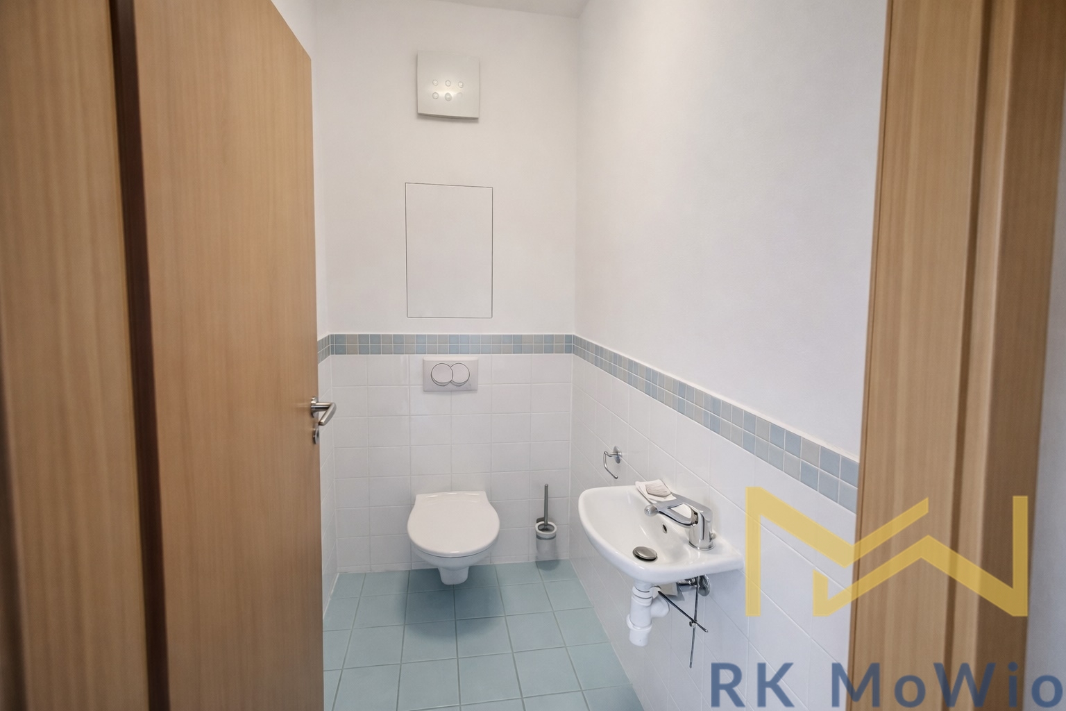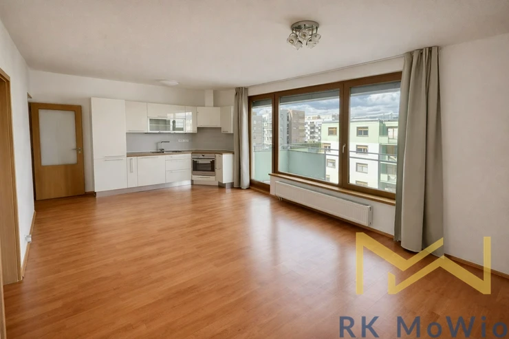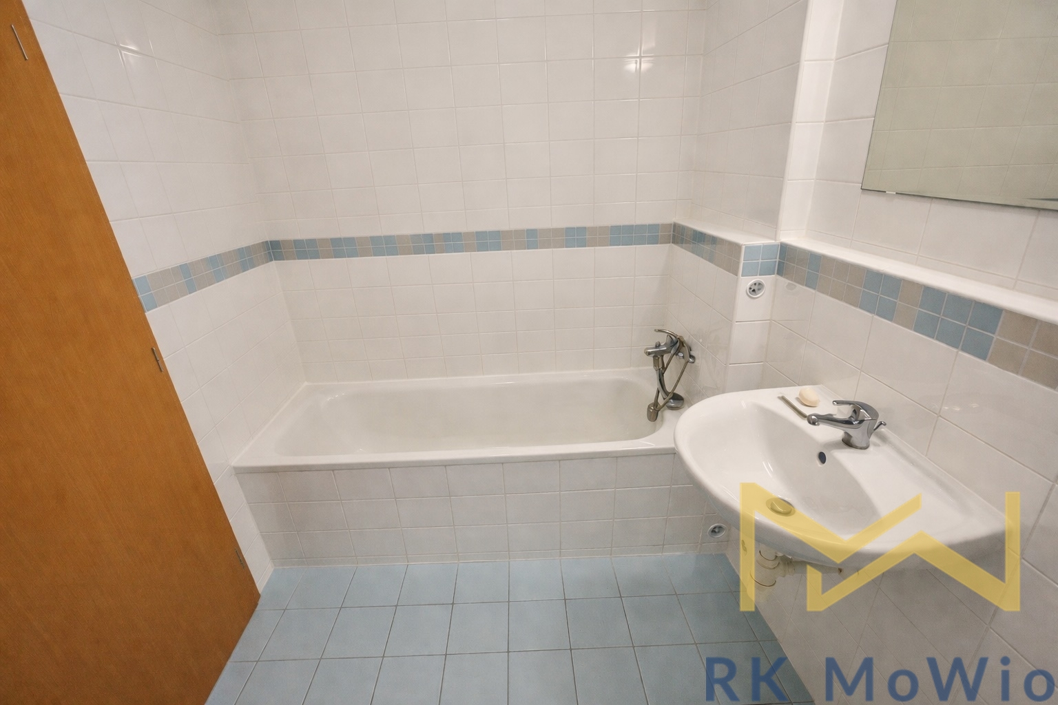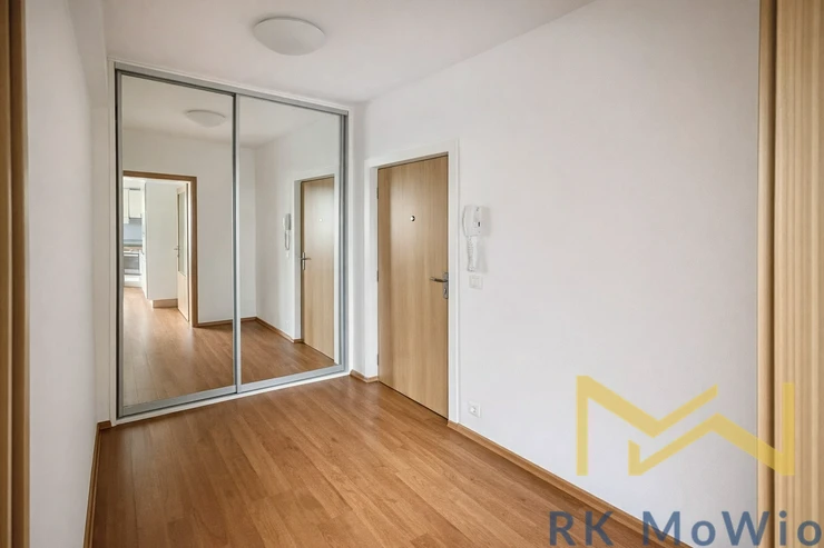For rent we offer a bright without furnished 2+kk (1-bedroom) apartment with a total floor area of 50 sqm, located on the 5th ( 6th above floor) floor of the residential project Zahrady nad Rokytkou, in Prague 9 – Hloubětín. The apartment features an entrance hall, separate toilet, living room with kitchenette and access to the terrace, north-facing bedroom, bathroom with bathtub and a second toilet, and a cellar storage unit. The kitchen is equipped with a fridge, dishwasher, and stove, and there is a built-in wardrobe in the hallway.