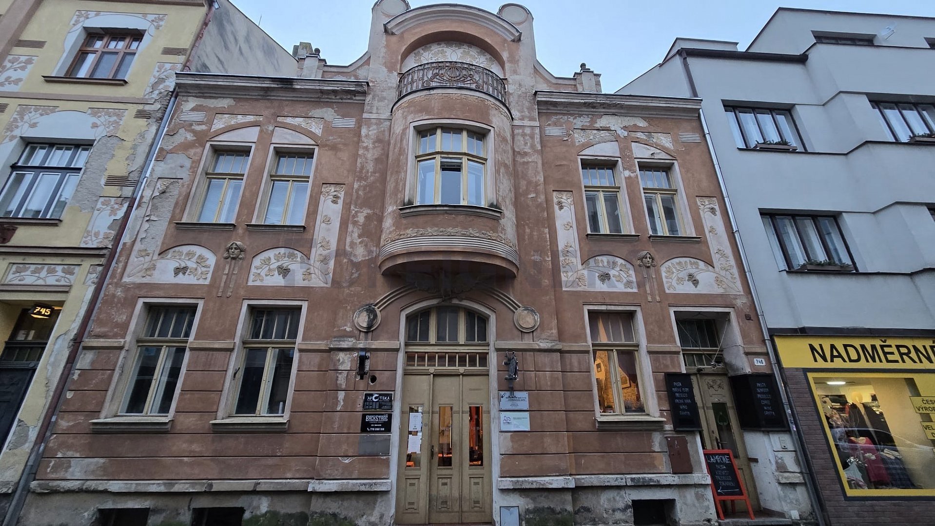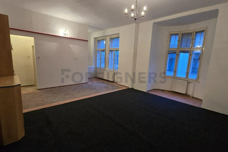 Apartment in located in the 1st floor of a building without elevator. It has windows - combined of wood and plastic. Windows facing Jindřišská street.