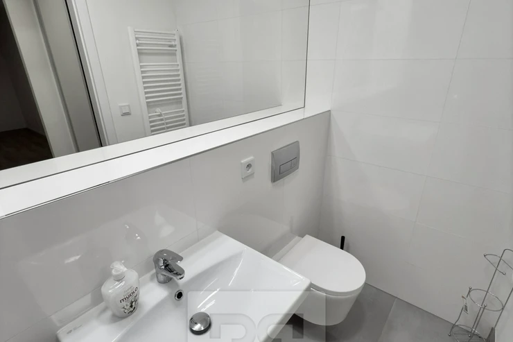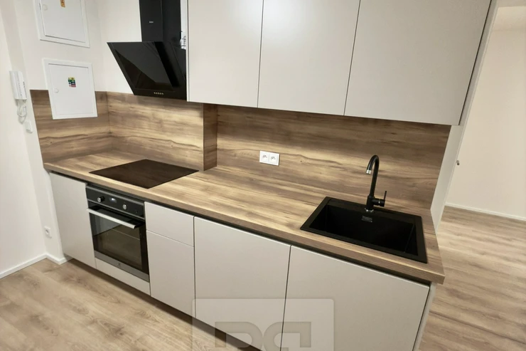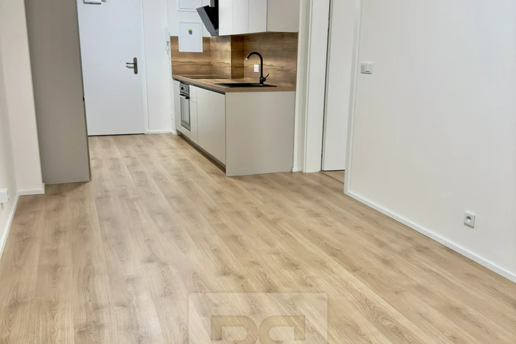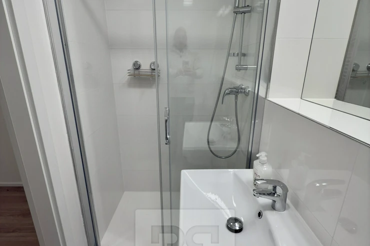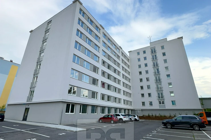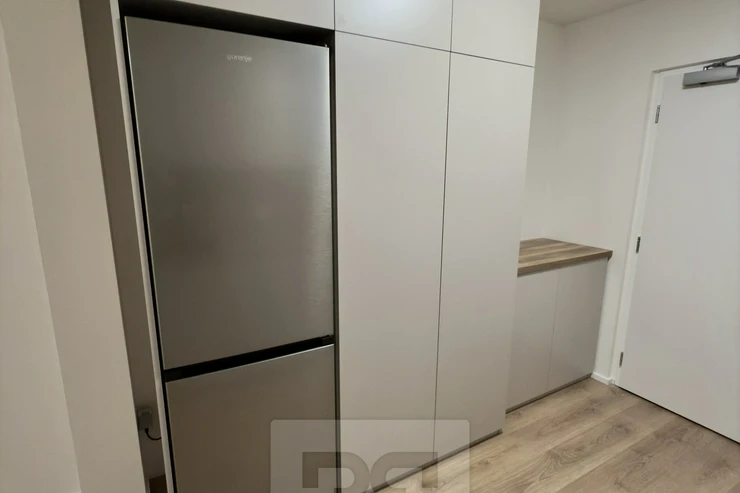 We offer you a 2+kk apartment for rent with a living area of 48 m², located on the 7th floor of a new building with an elevator. The apartment consists of a living room with a kitchen fully equipped with appliances including a dishwasher, a bedroom, a dressing room and a bathroom with a shower and toilet. The apartment includes a brick cellar on the 2nd floor and a reserved parking space.