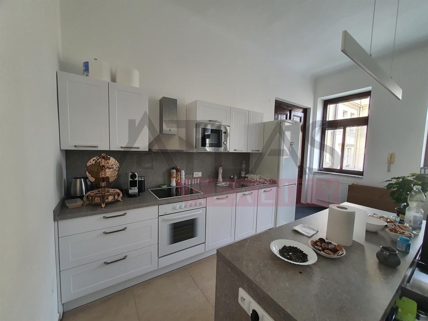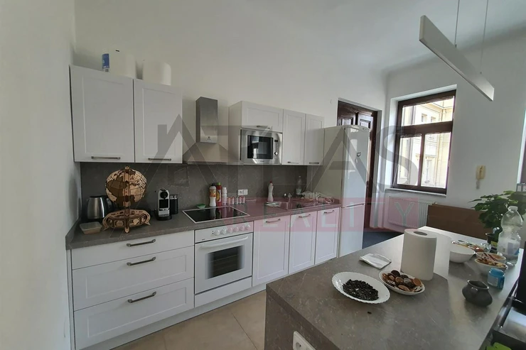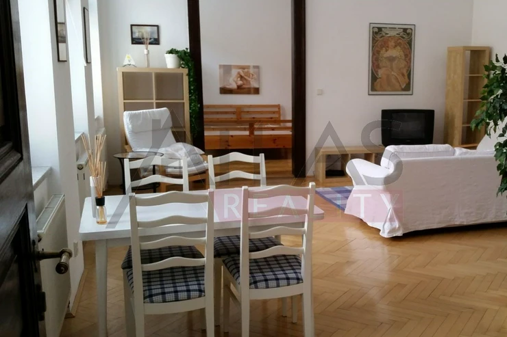 Rent an furnished one bedroom apartment , (71sqm). 4th floor, The apartment is situated in representative location of Prague 1, just 5 minutes by foot to Wenceslas Square. The are spacious living room with fully equipped kitchnette, bedroom, "winter garden", bathroom (shower), washing machine, dryer, searate tiolet. There is a possibility of parking in a garage for additional fee. There are an elevator, satellite, TV. The house if afrer reconstruction, combining the original historical features with a modern technology. Great living in the center of Prague. Excellent transport links, metro station A and B, trams 93,10,16,22. Rent 29.385,- CZK. Fees ( house common costs ) 3.195- CZK, tenant pays energies and telecommunication. For more details and managing visit call English speaking agent Jan, phone (+420) 775 609 626.