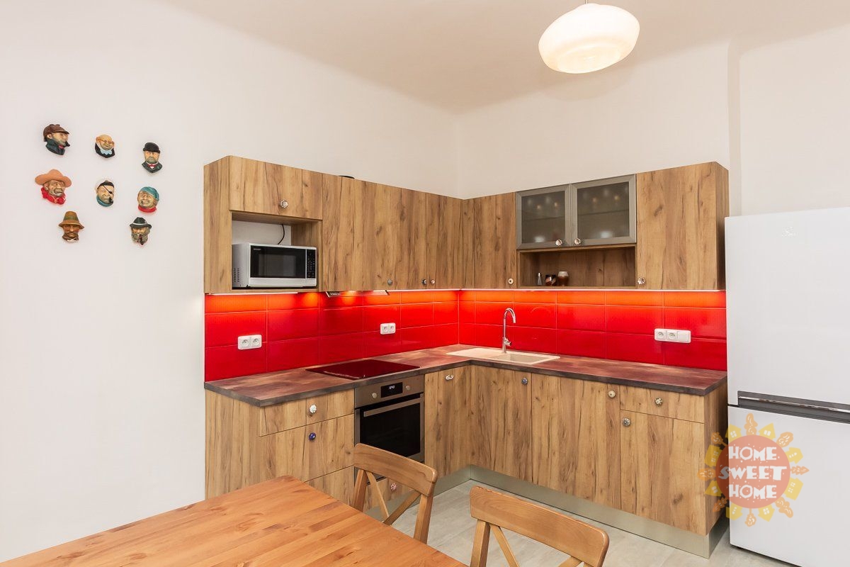 We offer for rent a nice partially furnished 2+1 apartment with a balcony located on the 2nd floor of a brick building with an elevator, in Žerotínova Street in Žižkov.