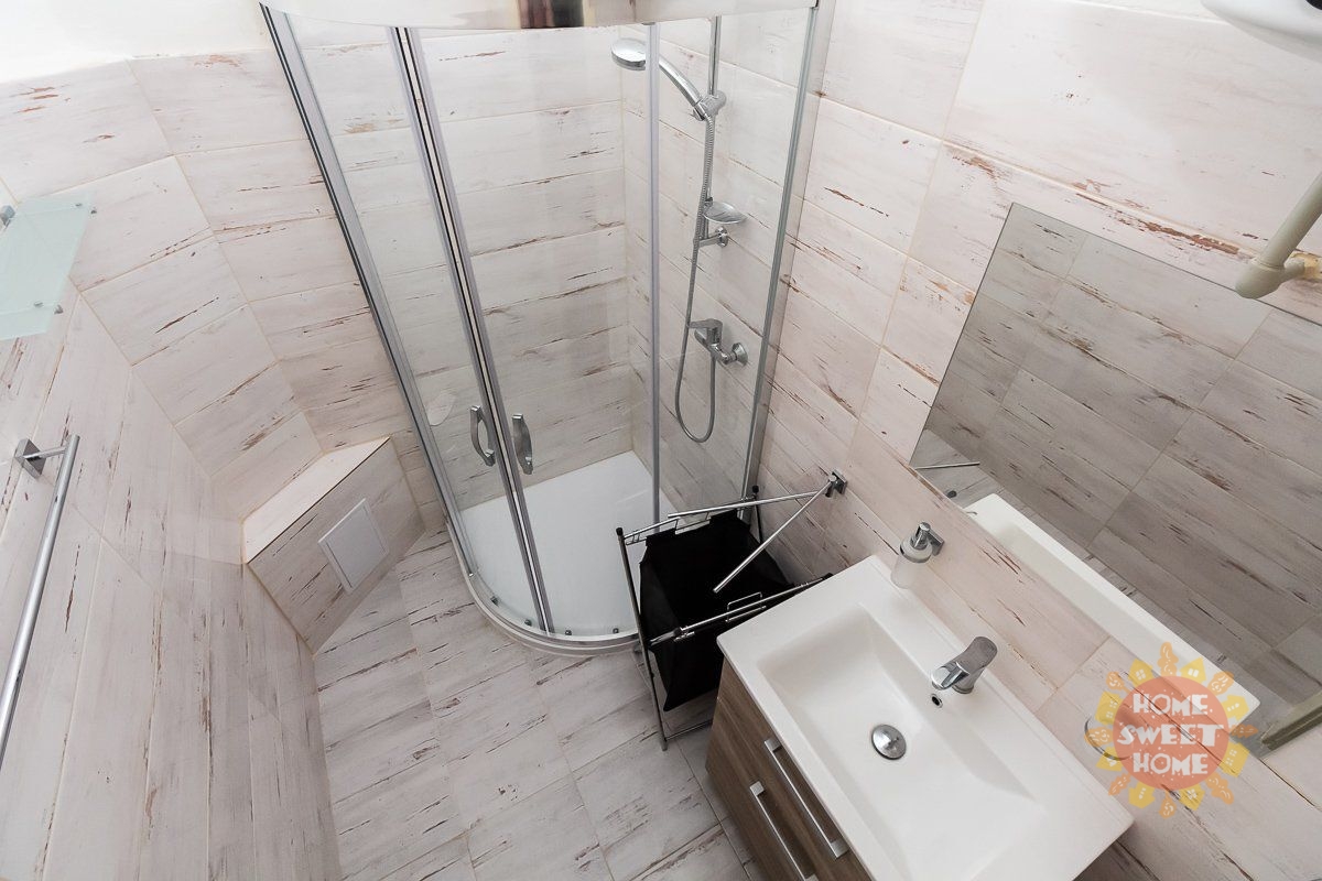 Entrance hall equipped with a built-in wardrobe, a chest of drawers and a shoe rack, a living room with a sofa, a separate bedroom with a wardrobe and a chest of drawers, a kitchen with a dining table and a modern kitchen (ceramic hob, oven, dishwasher, fridge, washing machine and a microwave), bathroom with shower, separate toilet. Plenty of storage space - pantry, cellar. On the floor is PVC, floating floor, WAW heating.