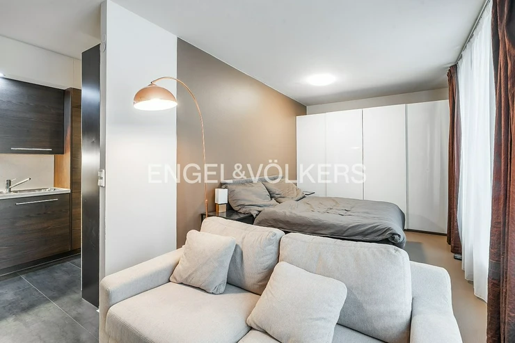 We offer for rent a fully furnished studio apartment on the first floor of the Císařský Mlýn residence. The apartment has an entrance hall, a bathroom with a shower, a fully equipped kitchen with all appliances, and a living area.