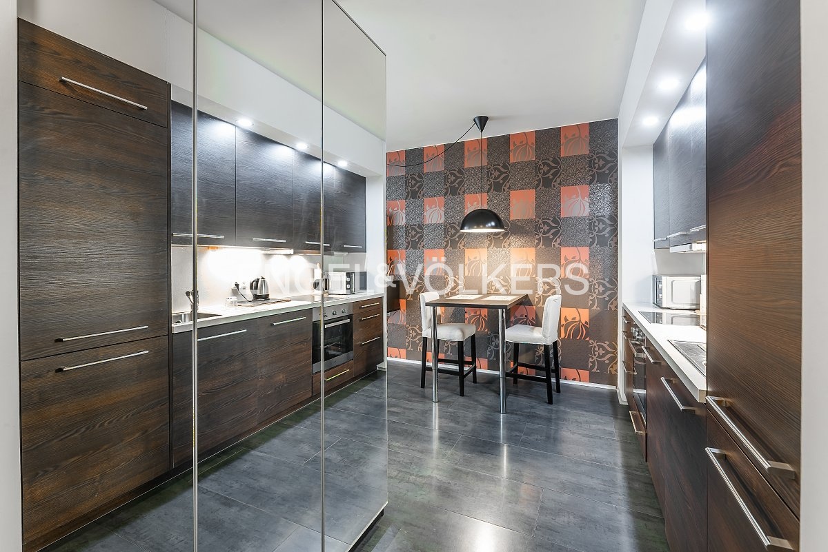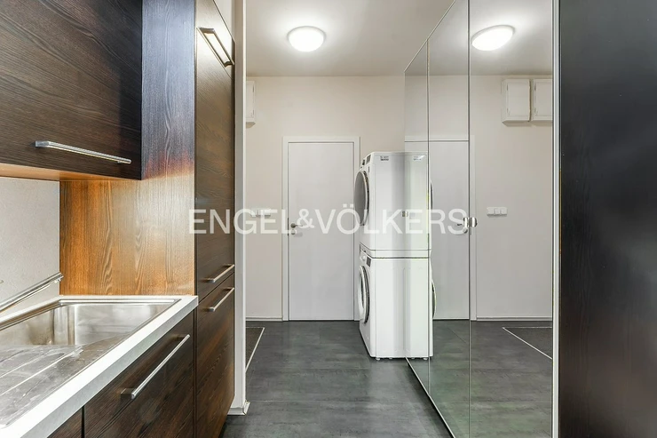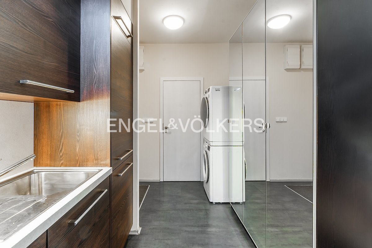 Among the great advantages of this residence is a private courtyard with terraces and a playground, which is accessible only to residents of the building, a private fitness centre and wellness centre, and, for an additional fee, it is possible to rent an outdoor or garage parking space and a cellar.