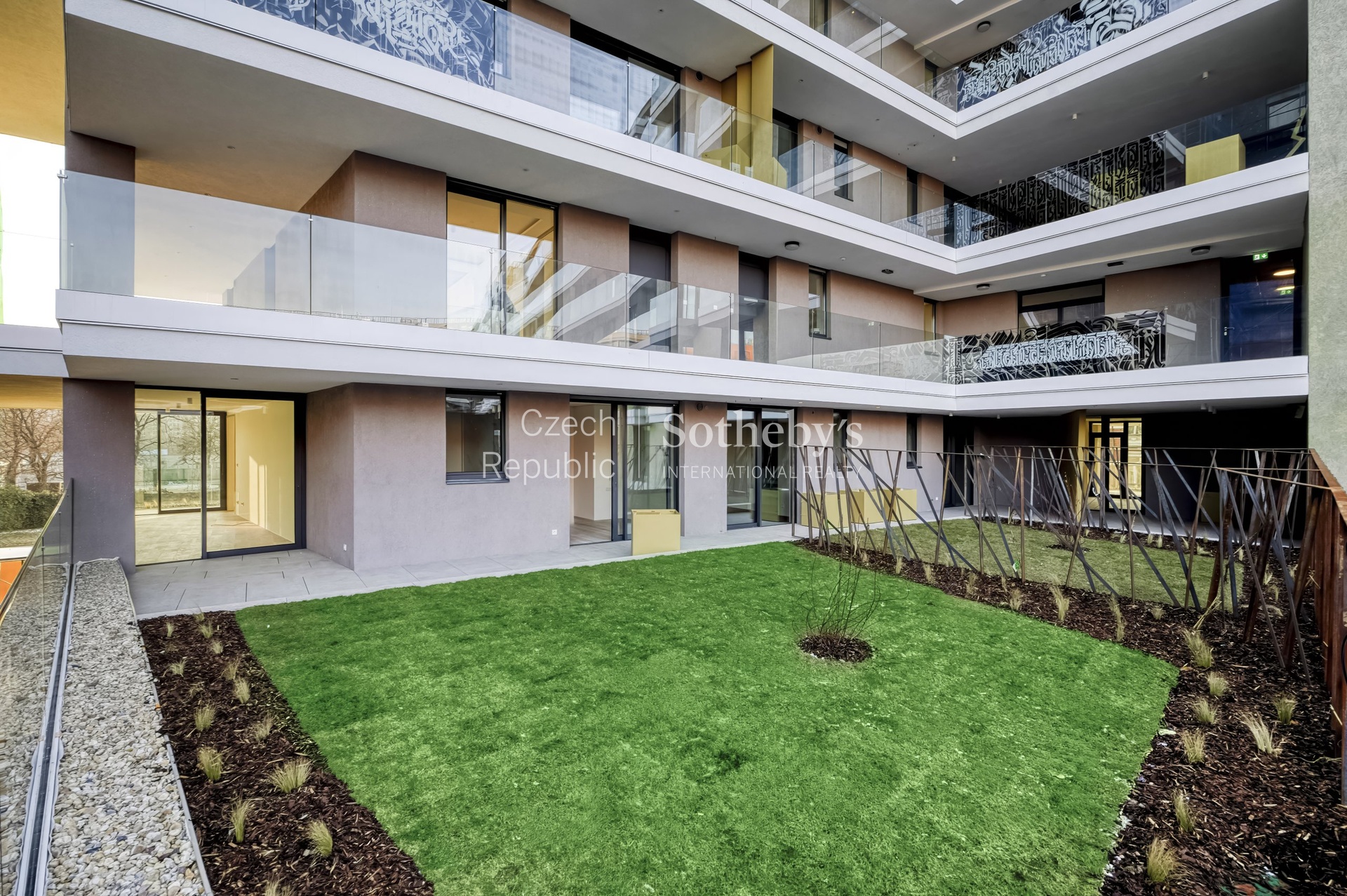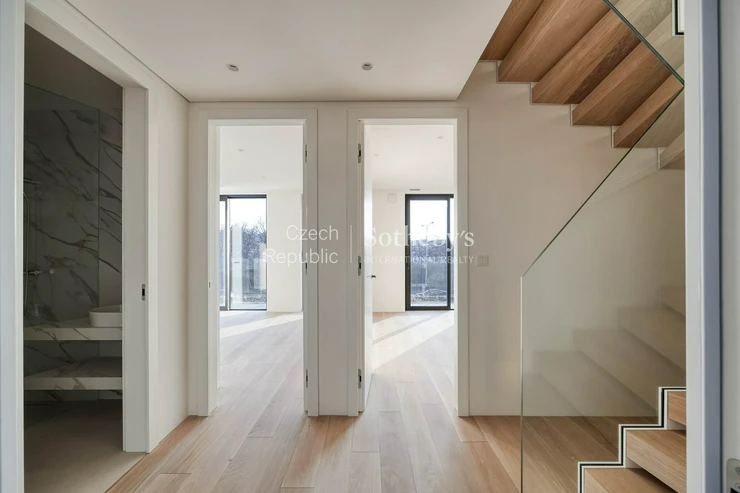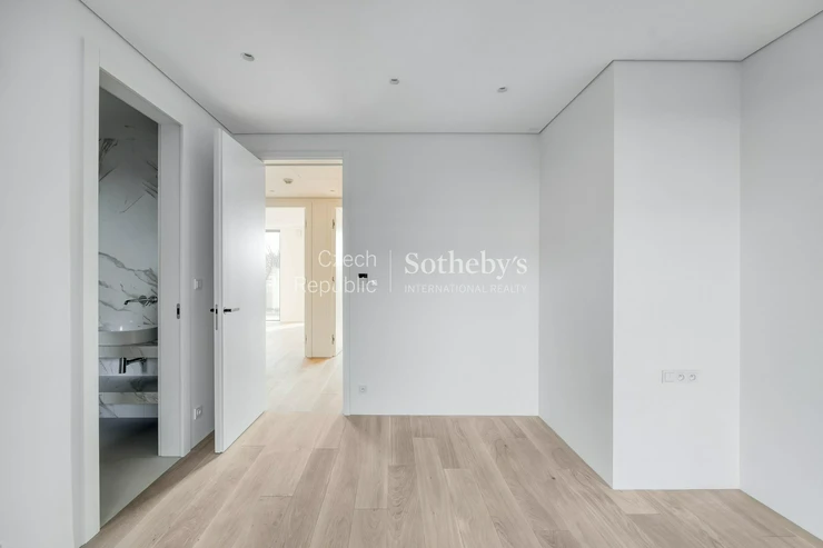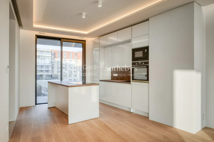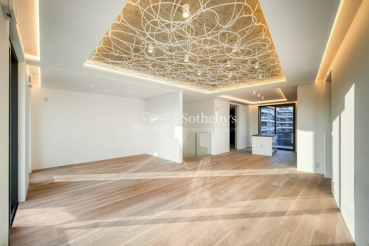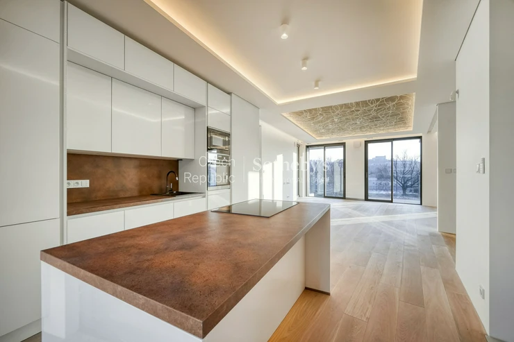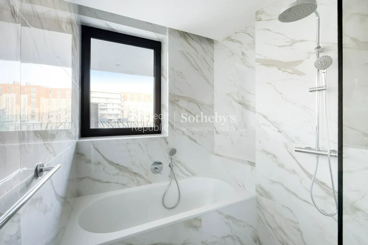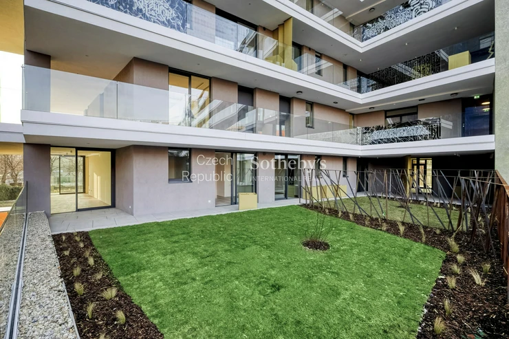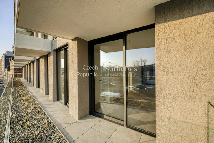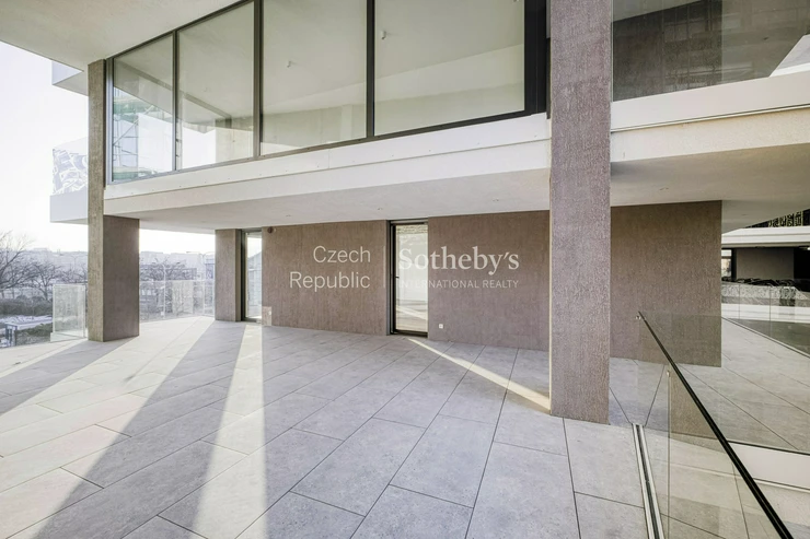 Sotheby’s International Realty Czech Republic offers for rent an exceptional duplex apartment 5+kk, located in the prestigious residential project Rezidence Linea Pura. The apartment with a usable area of 129 sqm stands out with exceptionally generous outdoor areas in the form of terraces, a winter garden and a front garden with a total area of 211 sqm.