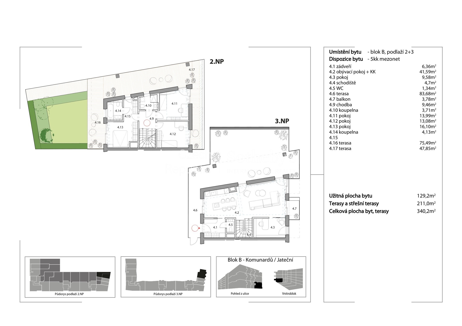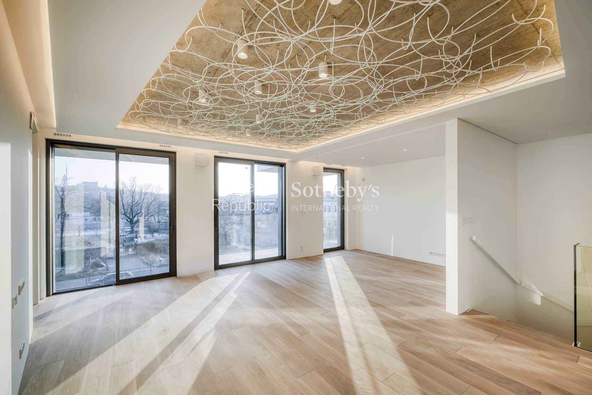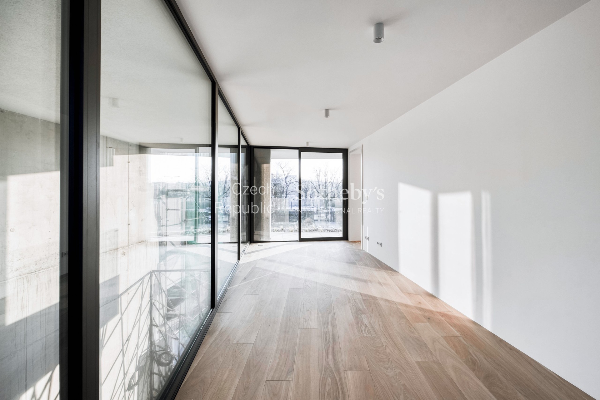 Sotheby’s International Realty Czech Republic offers for rent an exceptional duplex apartment 5+kk, located in the prestigious residential project Rezidence Linea Pura. The apartment with a usable area of 129 sqm stands out with exceptionally generous outdoor areas in the form of terraces, a winter garden and a front garden with a total area of 211 sqm.