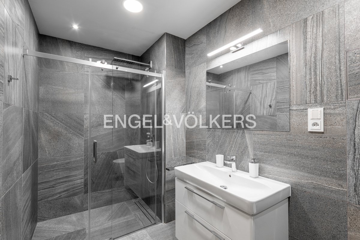 The apartment has an entrance hall, a designer bathroom with a shower and toilet, a spacious utility room, a bedroom with built-in wardrobes, and a living room connected to a fully equipped kitchen with all appliances. A big advantage of the apartment is the spacious terrace with an area of approximately 20 m2 facing west, providing pleasant views and the opportunity to relax.