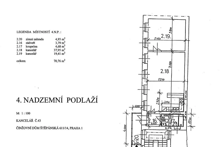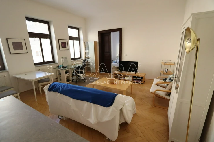 We offer for rent a one befroom apartment (71 sqm, optionally furnished or unfurnished) in a completely renovated apartment building from 1878 with a modern elevator and underground garages in the center of the metropolis in Štěpánská Street, Prague 1. The rooms have parquet floors. Thanks to the higher floor, the apartment is very sunny and, thanks to its orientation to the courtyard, also quiet. This is the part of Štěpánská Street, which is farther from Wenceslas Square. In addition to the rent, the residents of the apartment pay separately for energy and water consumption, and 3 195 CZK per month is paid for house services. The security deposit is equal to three months' rent and the real estate agency commission is equal to one month's rent.