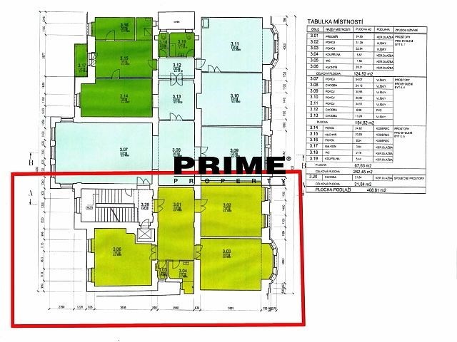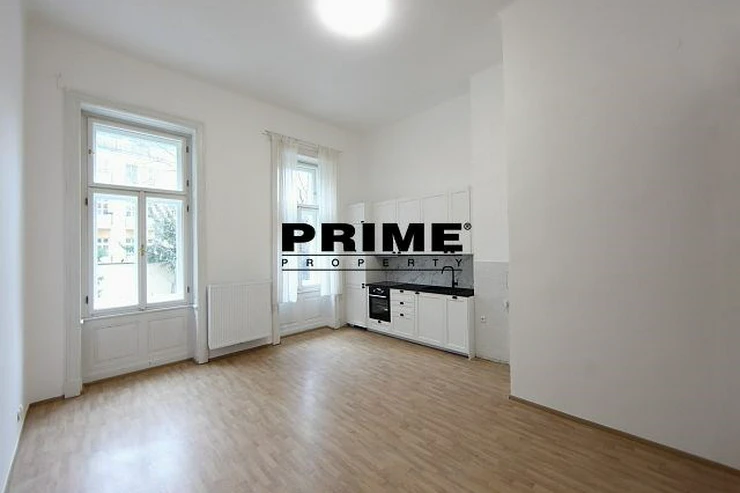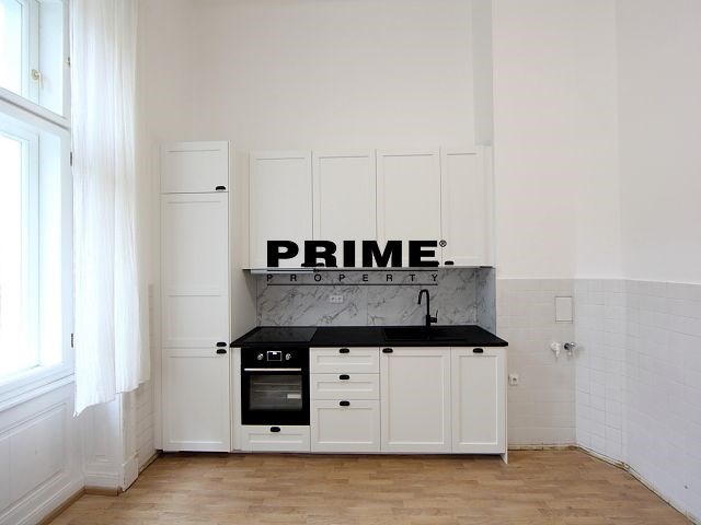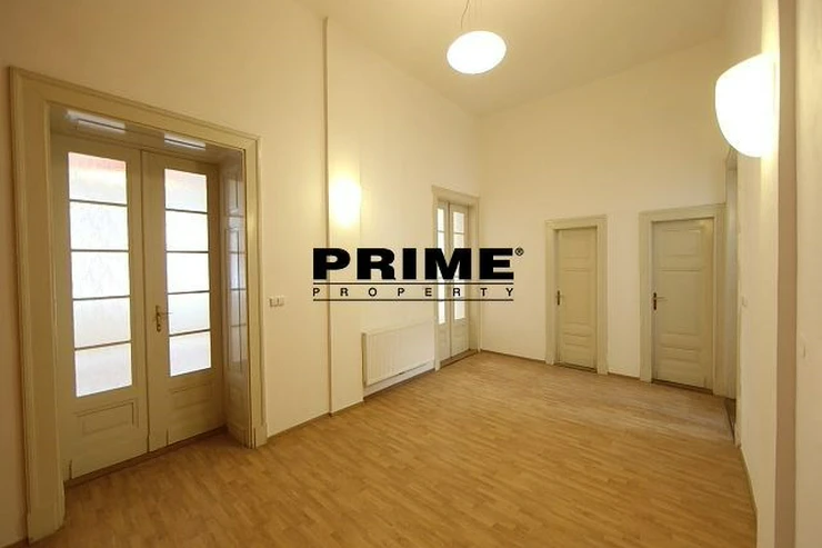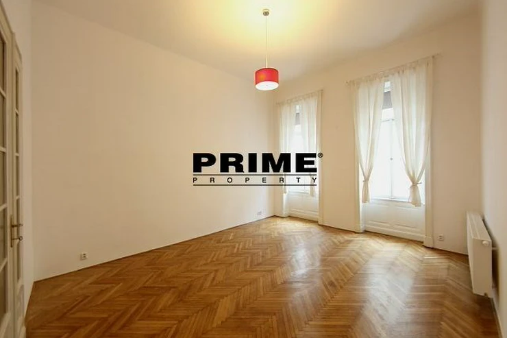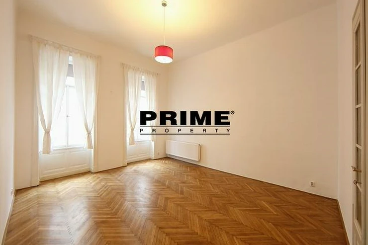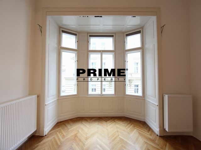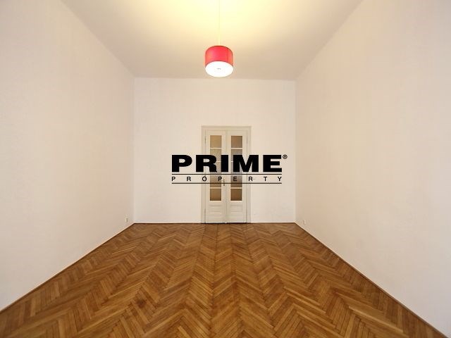 Spacious, 2 bedroom, 1 bathroom, unfurnished apartment for rent, 3+kk, 124m2, situated on the 2nd floor of a completely renovated building with a lift and a shared garden in the courtyard.