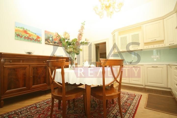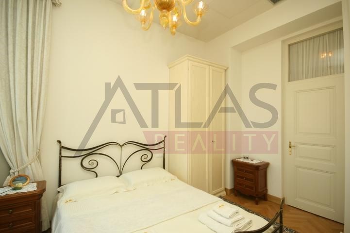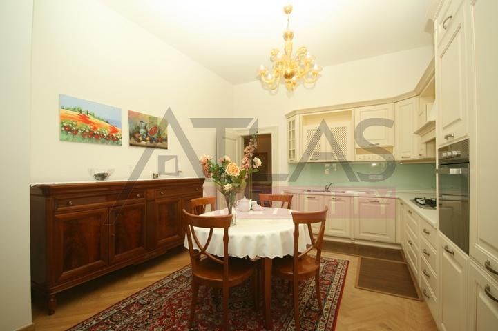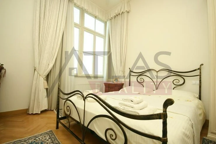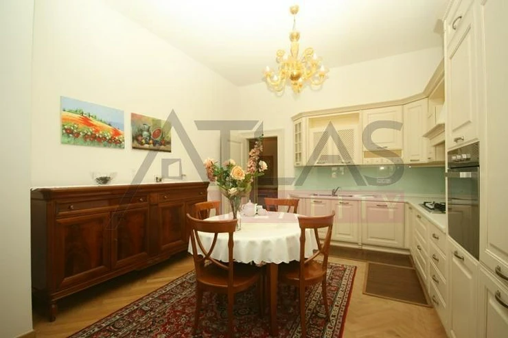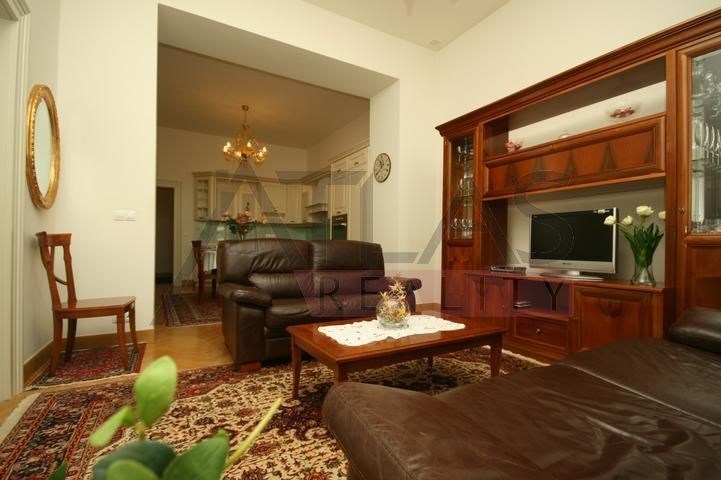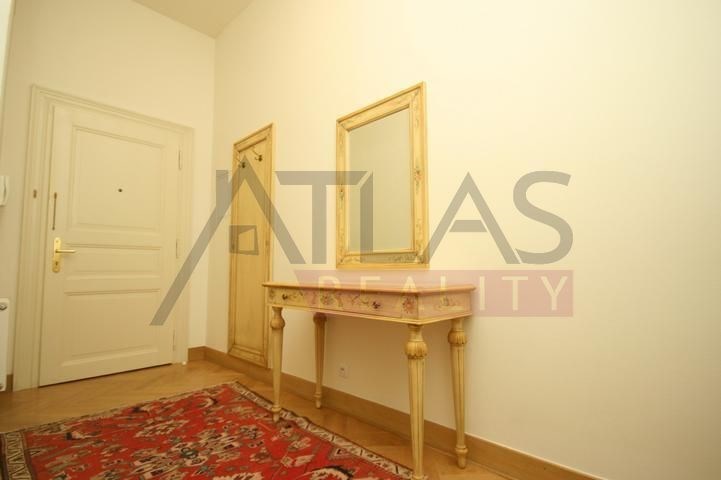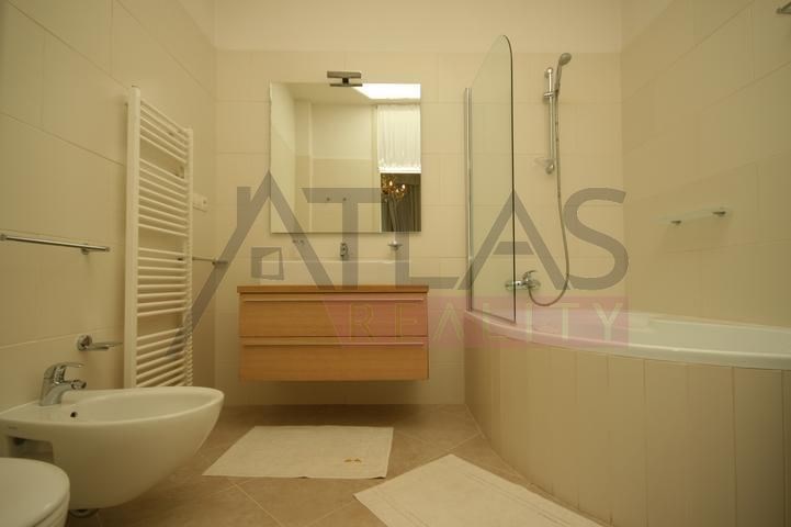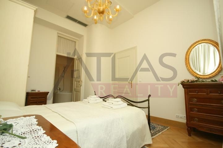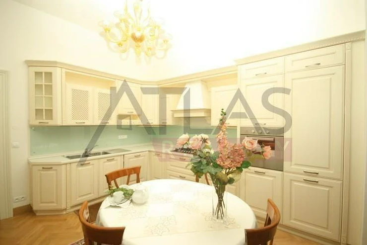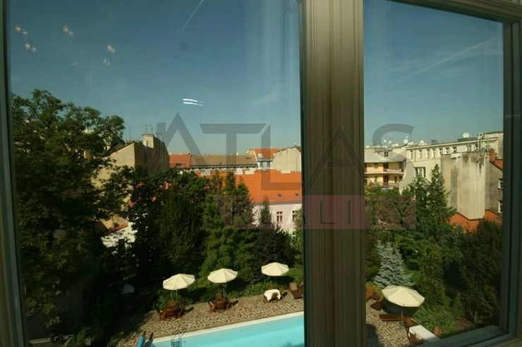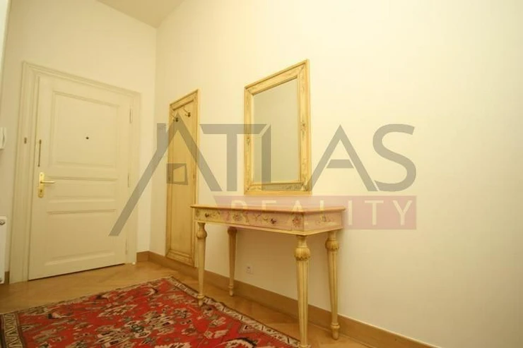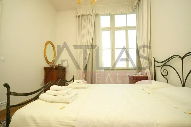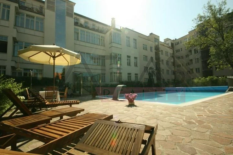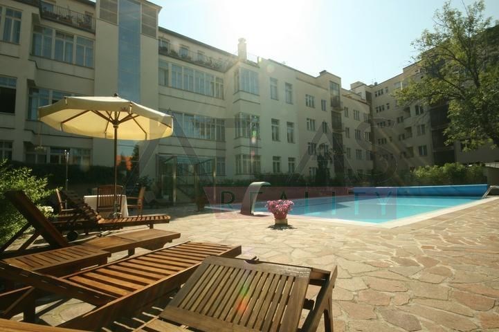 Rental of a fully furnished duplex apartment 2+kk (69 sqm) on the 4th floor with an elevator in a prestigious classical Art Nouveau building with high ceilings and original decorations, completely renovated in 2006. The building is located in a residential area of the historic center of Prague, only 200 meters from Riegrovy Sady park, 300 meters from the Metro station line A - Náměstí Míru, and 500 meters from Wenceslas Square - Metro station Muzeum, lines A and C and the shopping and cultural center of Prague. The apartment is completely furnished with pseudo-antique Italian furniture. It consists of a living room of 37 sqm with a kitchenette equipped with a refrigerator with freezer, dishwasher, gas stove, and extractor hood, a bedroom of 12 sqm, a bathroom with a sink, corner bathtub, toilet, and bidet. The apartment has a telephone line, high-speed internet, TV, satellite, parquet floors and tiles, and high-standard materials were used during the renovation. The building has underground garages, an elevator, and a large swimming pool in the courtyard, 8 x 11 meters and 1.2 meters deep, with a hydromassage area, surrounded by a terrace and greenery. There is also a CCTV system, security, and a caretaker in the building. Garage parking is for a fee, and the use of the pool is included in the price. The price does not include fees which are approximately 450 EUR per month. For more details and managing visit call English speaking agent Jan, phone +420 775 609 626.