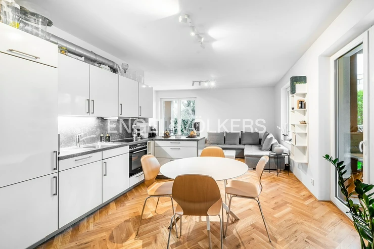 Generous apartment in the "Monte Christo" villa with a parking space and a great location near the center of Smíchov. The apartment is located on the ground floor of a newly built residential villa designed in the spirit of First Republic architecture.