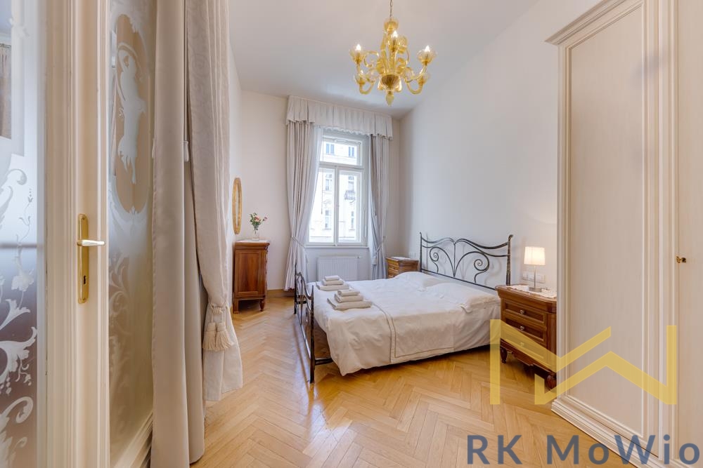 We offer for rent a fully furnished 1-bedroom apartment No. 9 (2+kk) with a floor area of 71 sqm, situated on the 2nd floor (3rd floor above ground) of a Neo-Renaissance building with an elevator, in Italská Street in the prestigious location of Prague 2 - Vinohrady.
