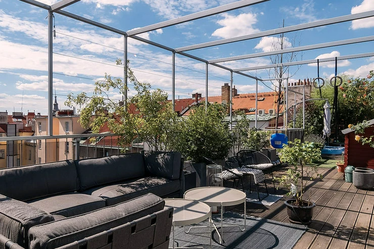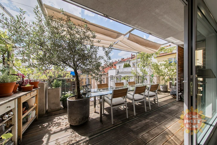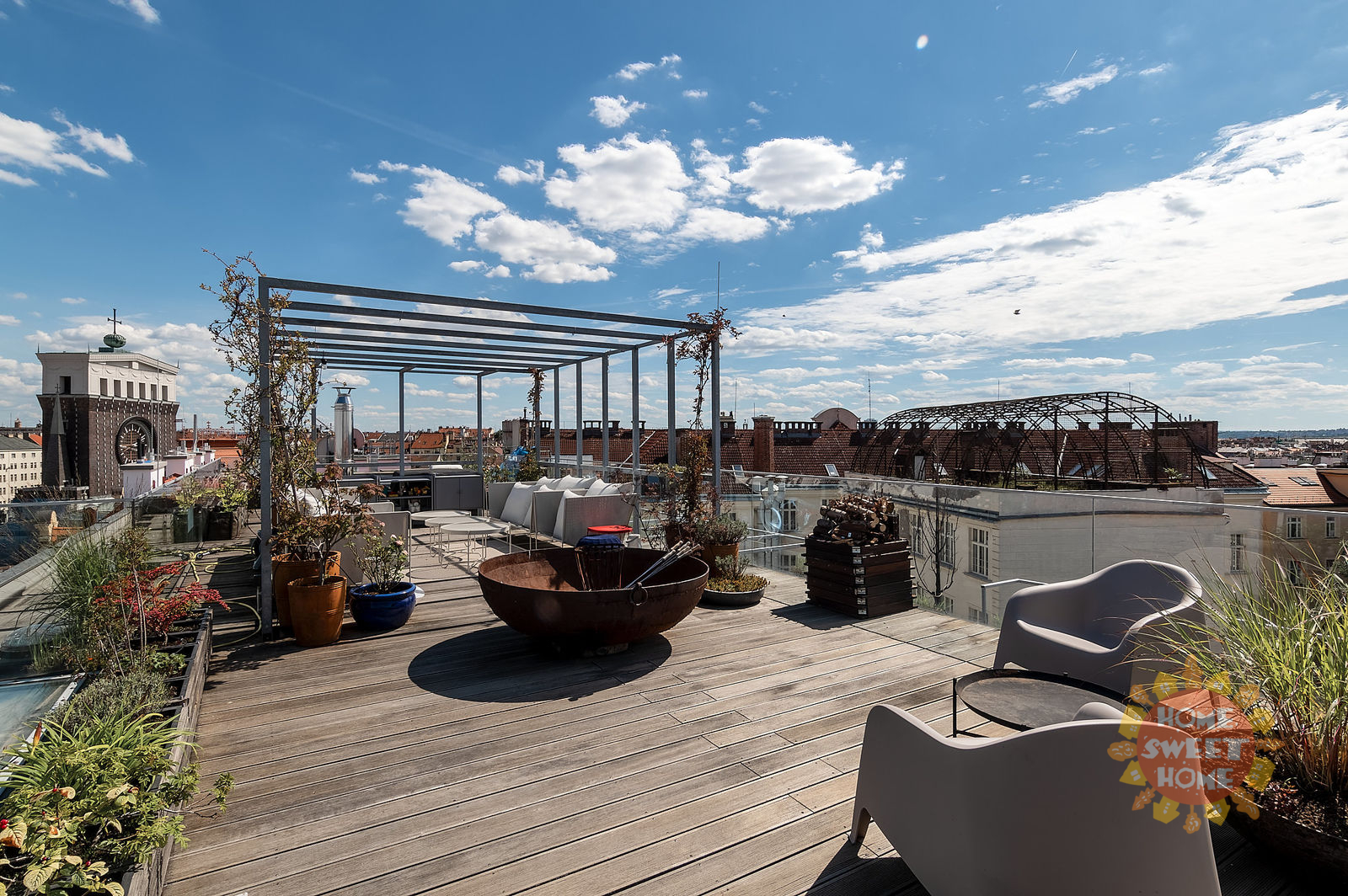 We offer for rent a unique spacious apartment 4+kk (260 sqm + 3 x terrace 193 sqm). The above-standard unfurnished apartment is located on the 6th, 7th and 8th floors of a house with a modern elevator in the popular location of Prague's Vinohrady, Laubova Street.