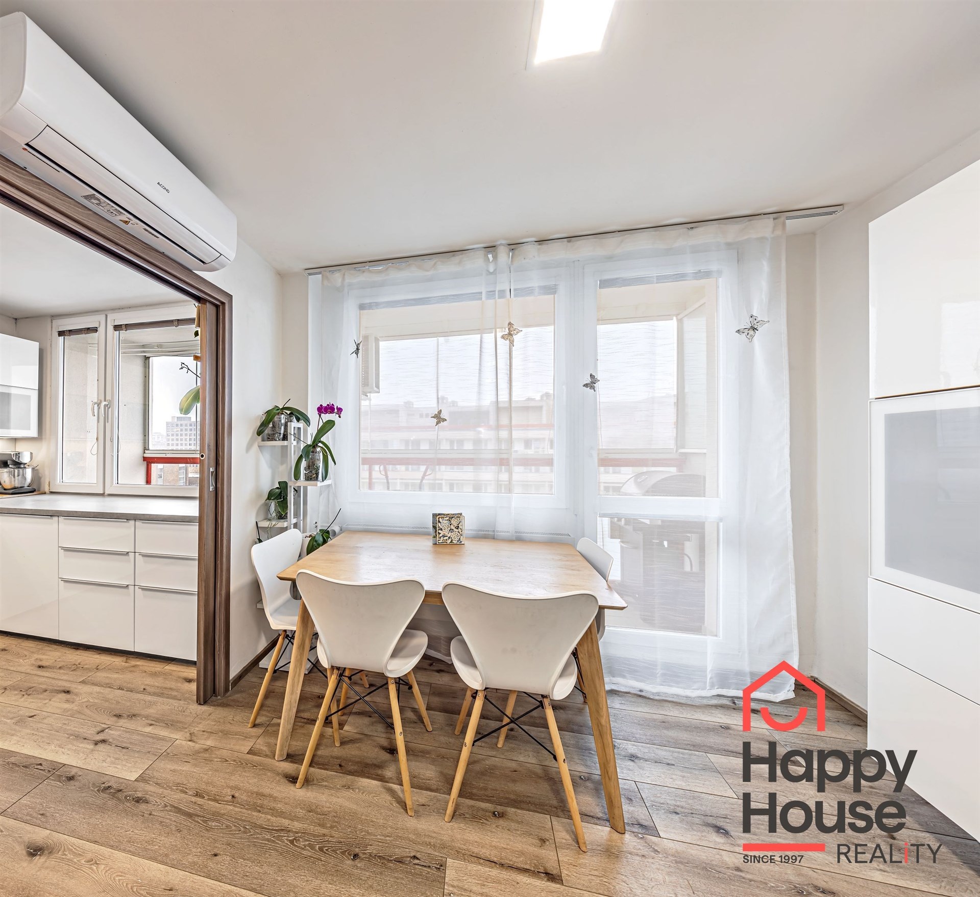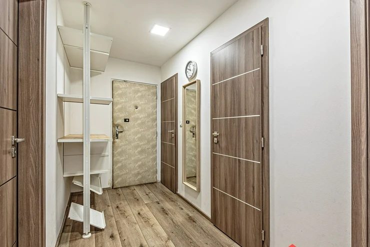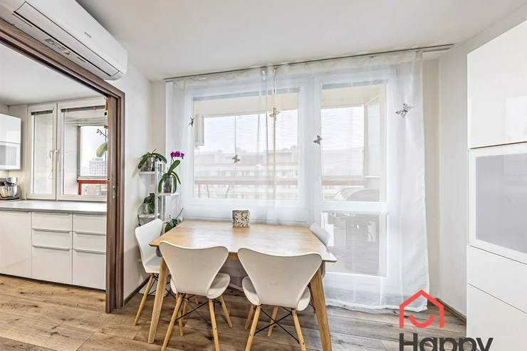 We exclusively offer for rent a partially furnished two-bedroom apartment with a floor area of 75.1 sqm, located on the 10th floor of a panel building with an elevator in the popular area of Prague 10 – Vršovice. Included in the rent is a kitchen unit with appliances, hallway and dressing room furnishings, and the rent also includes a television and internet connection from the Poda company, the other rooms are rented unfurnished.