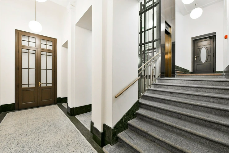 Palác Dlážděná is located near Náměstí Republiky and Masaryk Railway Station. It is an area with all civic amenities and transport services. Tram, metro, and train stations are just a few steps from the building.
