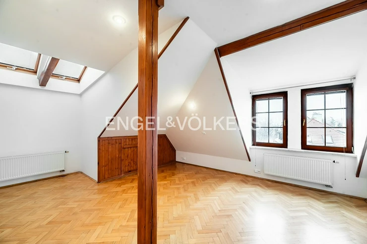 For rent is ready a duplex apartment 5+1 with a generous area of 350 sqm spread over the 1st and 2nd floor of a villa in Střešovice. The villa is near the tram stops Ořechovka and Baterie.