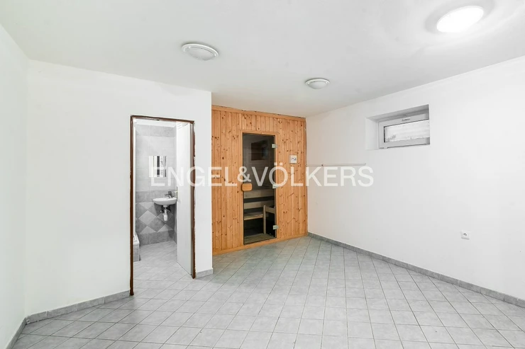 There are two parking spaces in a private garage and one additional parking space in a shared garage. A part of the garden and a sauna in the basement belong to the apartment.
