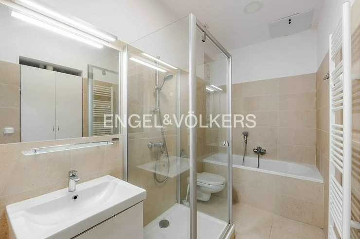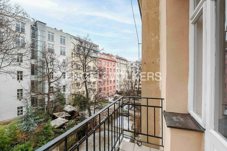 A unique advantage of the apartment is the breathtaking view of Havlíčkovy sady (Grébovka), which highlights the exclusivity of this address. Residents of the building also have access to a shared garden in the courtyard.