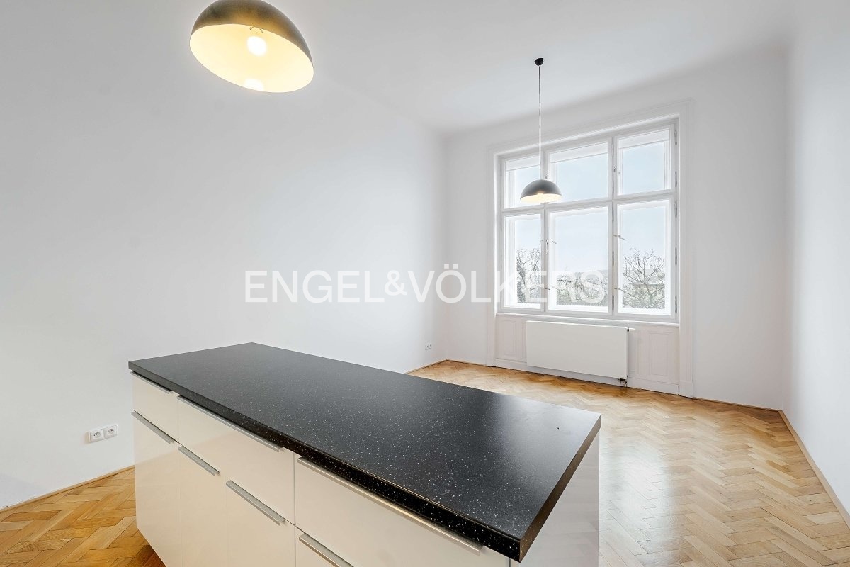 For long-term rent, we offer an elegant and airy 4+1 apartment situated in one of the most beautiful streets in Vinohrady – right at the entrance to Grébovka Park (Havlíčkovy sady).